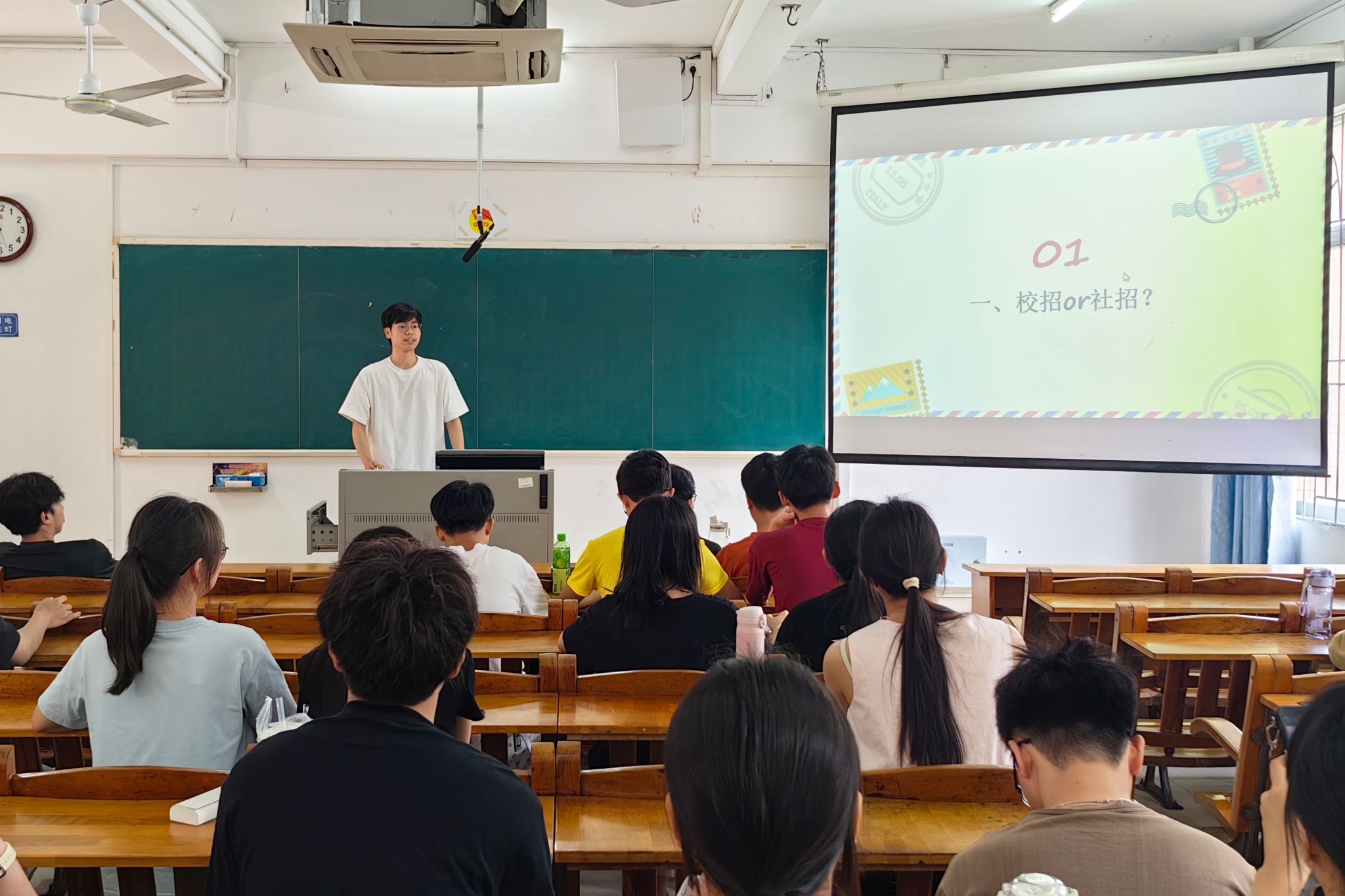 本次活动分为“考研备战”与“就业指导”两大主题。在考研板块,师兄师姐结合自身经历,从院校选择、复习规划、心态调整等方面展开分享。关于院校选择,应结合学校地理位置、专业选择以及网络上信息筛选等方面综合决定。在确定目标院校后,要持续关注学校动态,及时掌握考试大纲、参考书目等重要信息的变化 ;关于复习规划,合理规划好每天的学习时间,同学们还可以充分利用网络资源,选择适合自己的网课进行学习。同时,建议采用“番茄工作法”等科学的时间管理方法,有效提升学习效率,保持专注高效的学习状态;关于心态调整,考研途中可能遇到许多变故,应稳住节奏,科学应对压力。避免盲目与他人比较,要按照自己的节奏稳步推进复习计划。