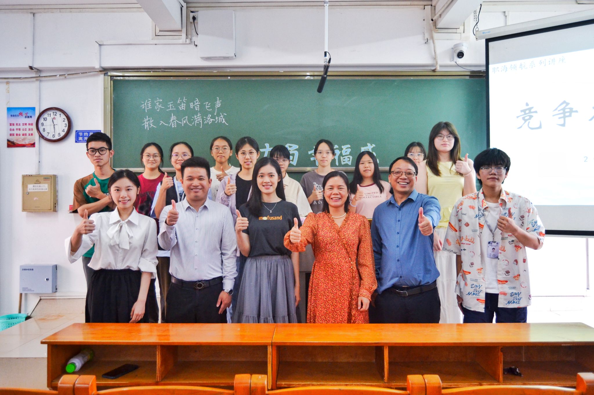 梁碧斐副书记对讲座进行总结,她提到校友陈捷今日的分享真心满满、内容丰富、实用性强,希望今天来的同学能够将“所听到的”变成“所行动的”,利用在校时间提高自己的核心竞争力和人际交往能力。学院将进一步整合各行各业具有典型代表性的校友资源,积极开展职海领航系列活动,根据各年级在校生实际,持续邀请优秀校友为在校生开展职业规划、就业指导、创新创业指导等多方面的交流与分享。