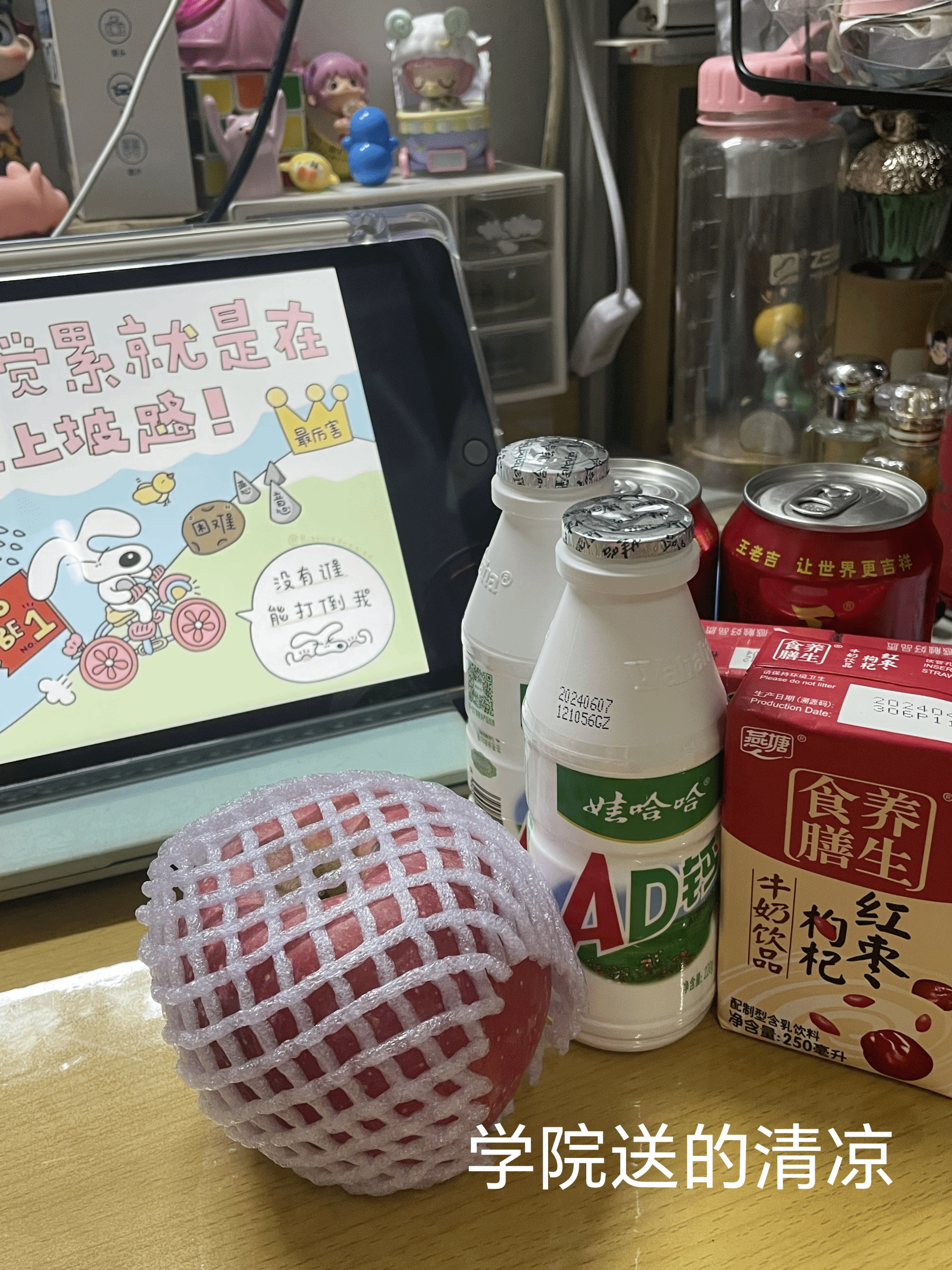除此之外,温暖的事情还有满满一箩筐。好像最不必说起,因为一直在身边;但是有最值得诉说,因为这样的感情永远恒温。总是不厌其烦,细心解惑的专业课老师们;总是做好后勤工作,考研初试那天赶来送饭的家人们;送上自制饮品还有加油小卡片,一起见证图书馆日夜的舍友;承载着友人爱意的礼物围绕在身旁,默默的陪伴也让一个人的备考之路不再孤单。