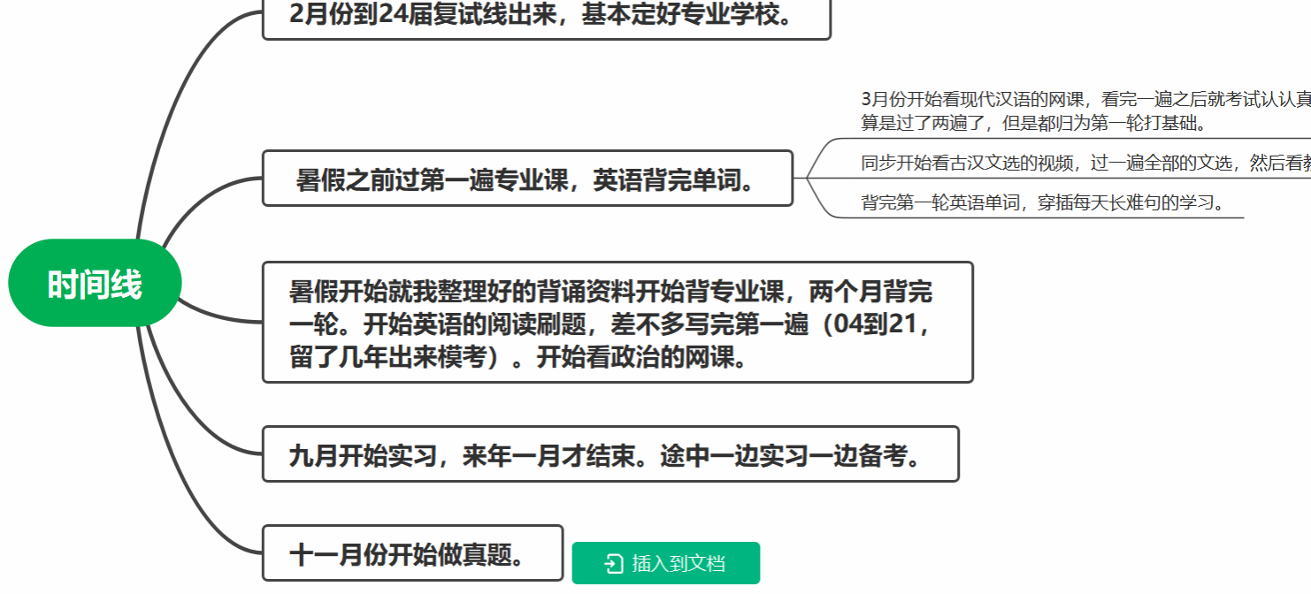九月,实习如期而至。为了赢得多一点学习时间,林洋在去上班的路上也听着政治背诵的音频。她表示深秋的到来意味着考研初试的接近,为了兼顾实习与考试,不得不制作更加周全的计划。公共课上,在细心挑选后跟紧适合自己的老师;在专业课上,注重复盘是她牢牢记住知识点的秘诀。那段时间,通常是吃饭慢一些都会有罪恶感。她总结自己的学习秘诀为:理框架——填充内容(输入)——自制思维导图(输出)——后续冲刺背诵,对照自制的进度表看自己有无缺漏,同时规范答题。一张张写满了的A4纸是她和知识搏斗的痕迹,但是她常常因此满足,也会告诫自己,想要去探讨更高深的知识,就需要全力奔赴下一场星光,而不要拘泥于眼前所学。