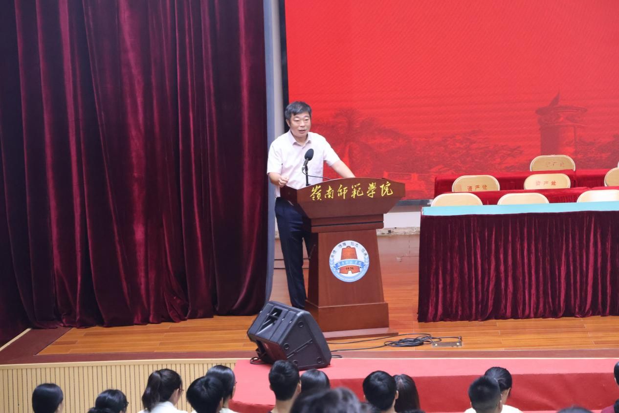 最后,由各系主任主持的专业领航教育同步开展,为新生详解专业特色与发展路径。周显波老师以“字里行间,遇见宇宙”为主题,解读专业内涵,引导新生感受文学魅力。随后他向新生们介绍了汉语言文学专业的课程体系,课程含公共课、必修课等,这些课程支撑着学生考编考研以及师范技能提升。