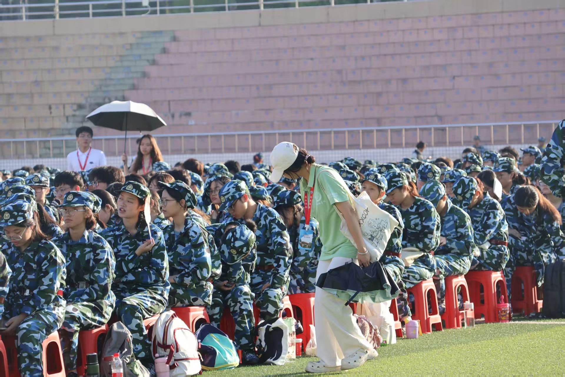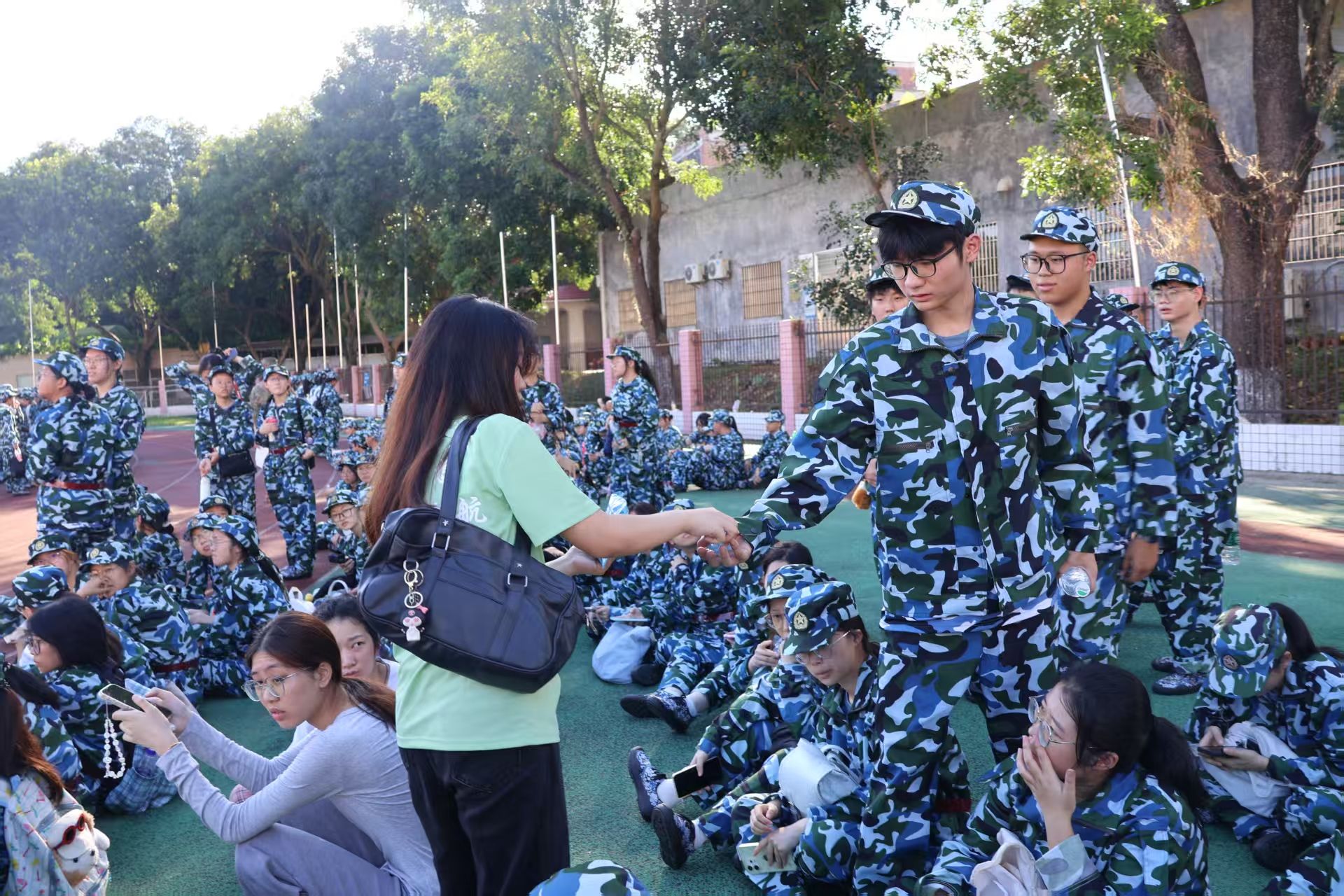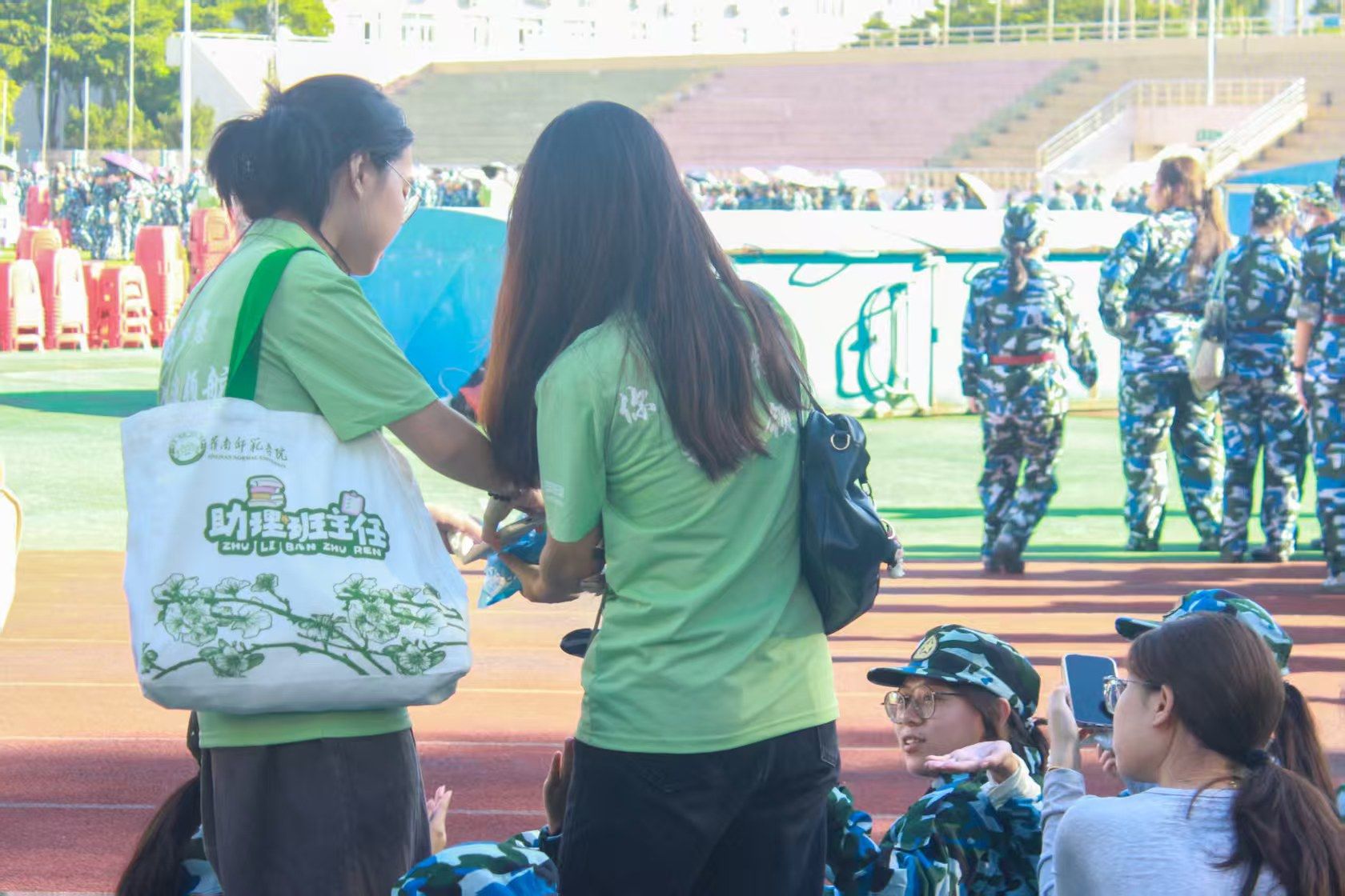 训练场上不仅有严格的训练,更有温暖的关怀。助班们时常来到训练场地,关心着同学们的身体情况、当有同学身体不适时,总能在第一时间得到妥善的照顾。