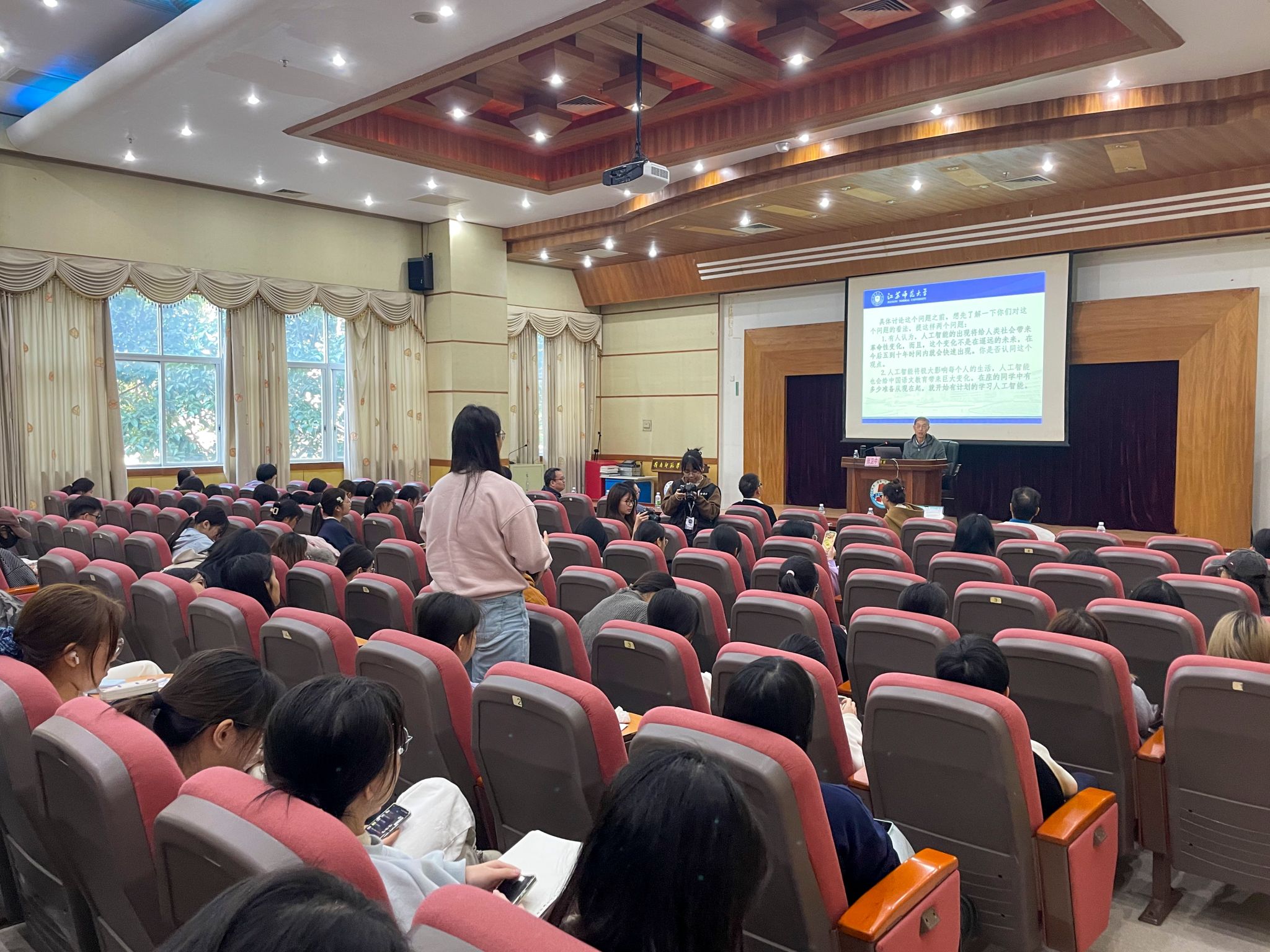 为主动应对人工智能技术对教育领域带来的深刻变革,12月15日,文学与传媒学院特邀江苏师范大学博士生导师张卫中教授,于图书馆学术报告厅开展《人工智能与未来教育:AI时代中文师范生面临的挑战与机遇》专题讲座。本次讲座由文传院副院长史习斌教授主持,梁碧斐副书记等180名师生共同聆听。