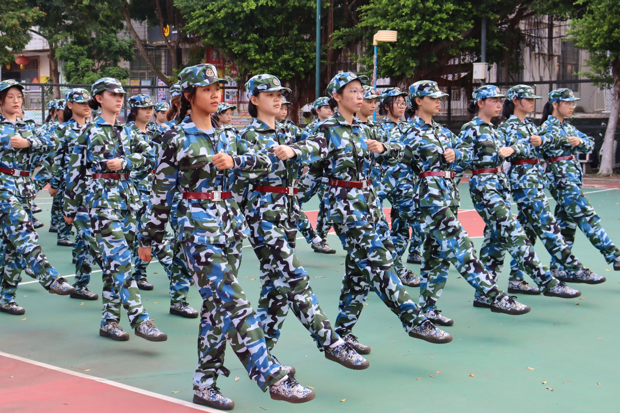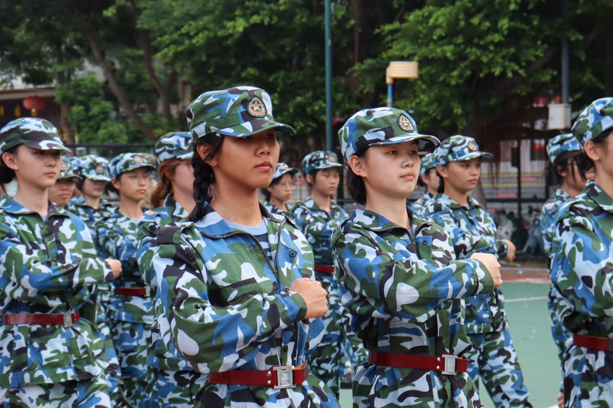文传学子以认真严肃的态度操练分列式