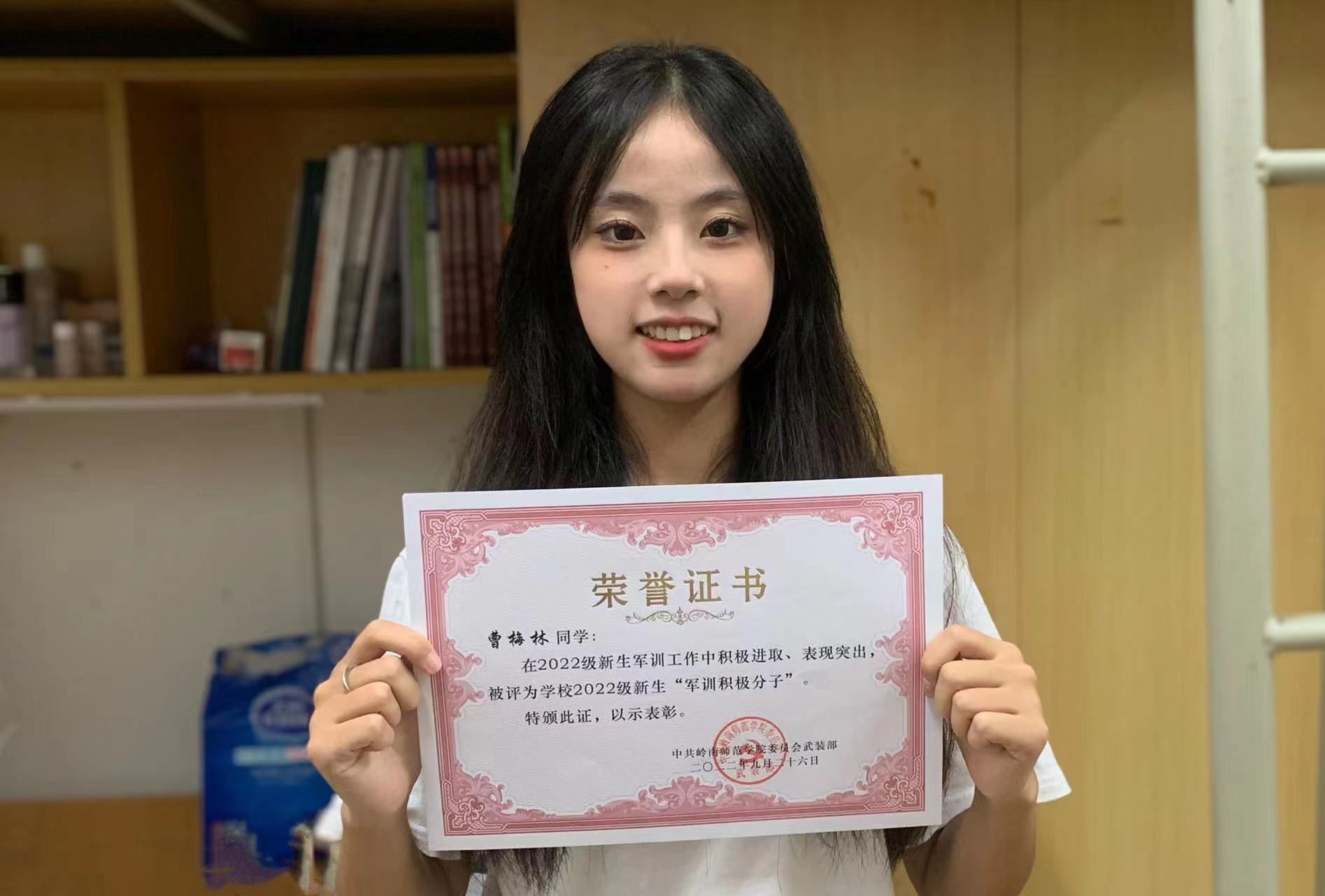 文传院新生军训获内务卫生评比三等奖锦旗