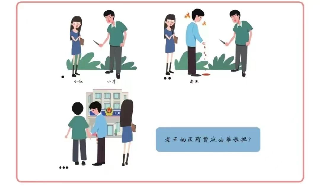 就本示例而言,小李是侵权人,老王是见义勇者,小红是受益人,老王因见义勇为而受伤,侵权人小李应当承担老王的医药费。如果作为侵权人的小李无力承担该笔医药费的话,那么老王有权请求受益者小红给予适当的补偿。