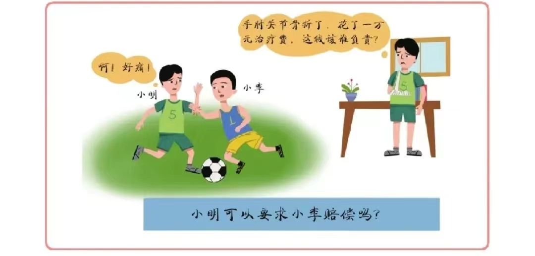 当然,《中华人民共和国民法典》确立的"自甘风险规则"是有适用条件的,并不是说小明踢球受伤就一律由自己承担损失。如果小明在抢球的时候,小李故意向小明"下黑脚"导致小明受伤,那么小明是可以找小李赔偿的。如果小李存在重大过失,比如小李的动作过大,已经超出足球运动的规则范围,那么小李也要赔偿。这种故意或者重大过失造成他人伤害的行为,不在"自甘风险规则"所容忍的范围内,且构成侵权行为,行为人应承担赔偿责任。朋友们在参加各类文体活动中意外受伤的话,应及时查清伤害发生的原因,若伤害是其他参加者故意或者重大过失导致的,可以要求该参加者赔偿。