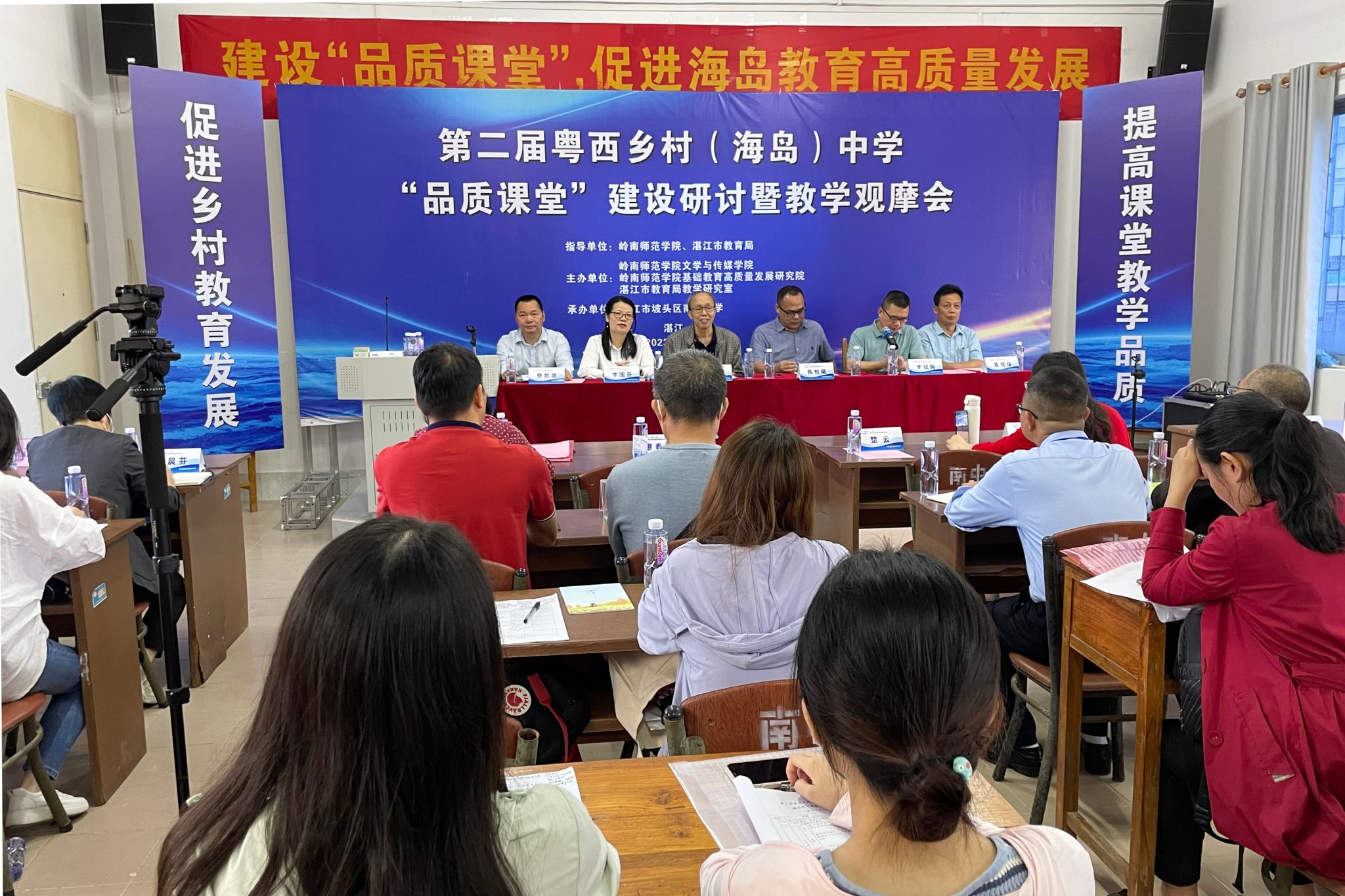 为提高我市乡村(海岛)学校办学水平,推动乡村(海岛)教育振兴,促进我市基础教育高质量发展,5月13-14日,由学校、湛江市教育局指导,我院、学校基础教育高质量发展研究院和湛江市教育局教学研究室主办的第二届粤西乡村(海岛)中学“品质课堂”建设研讨暨教学观摩会在坡头区南三岛南三中学举行。共有来自全市乡村(海岛)中学的老师600余人次参与了会议。