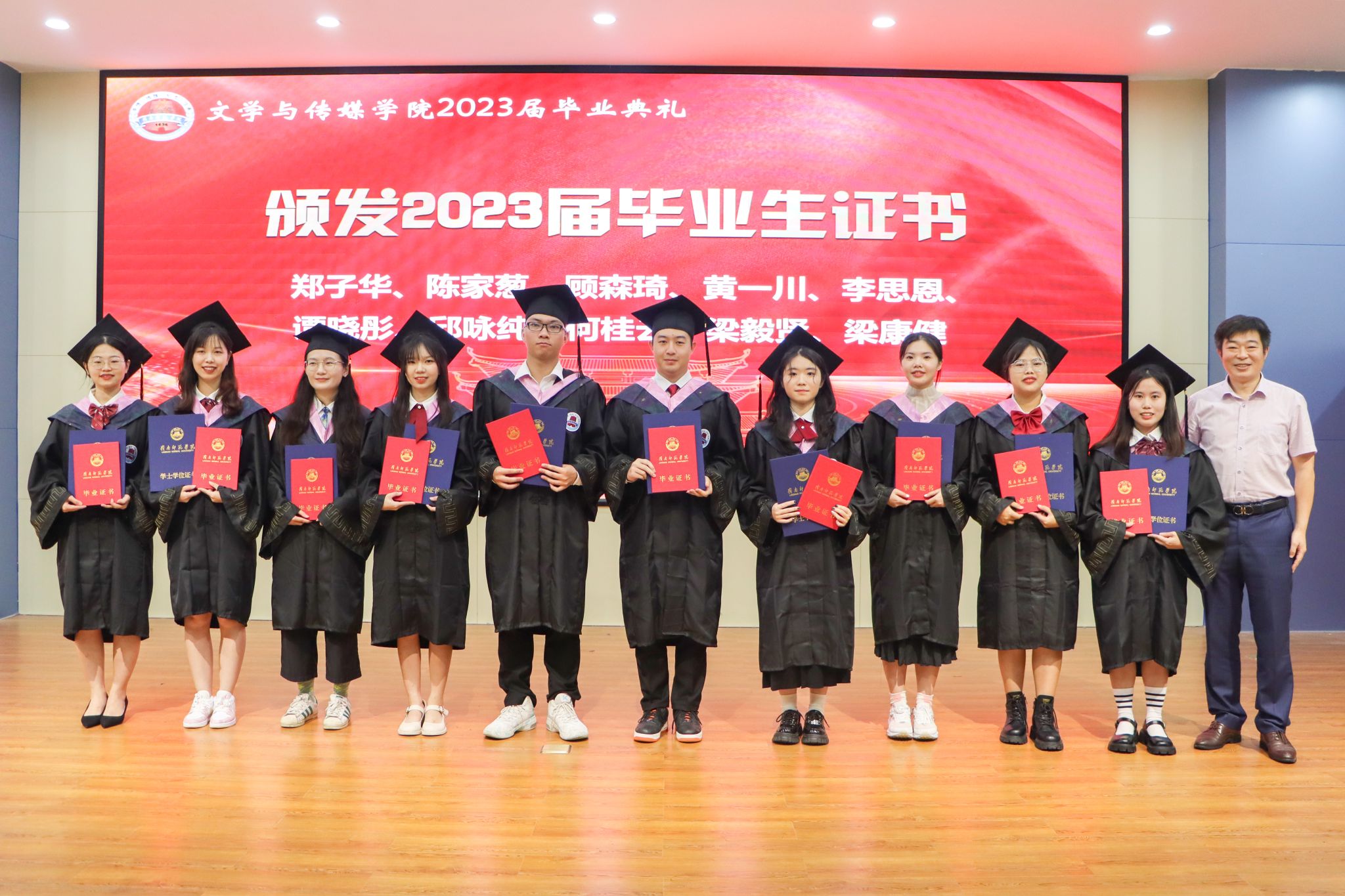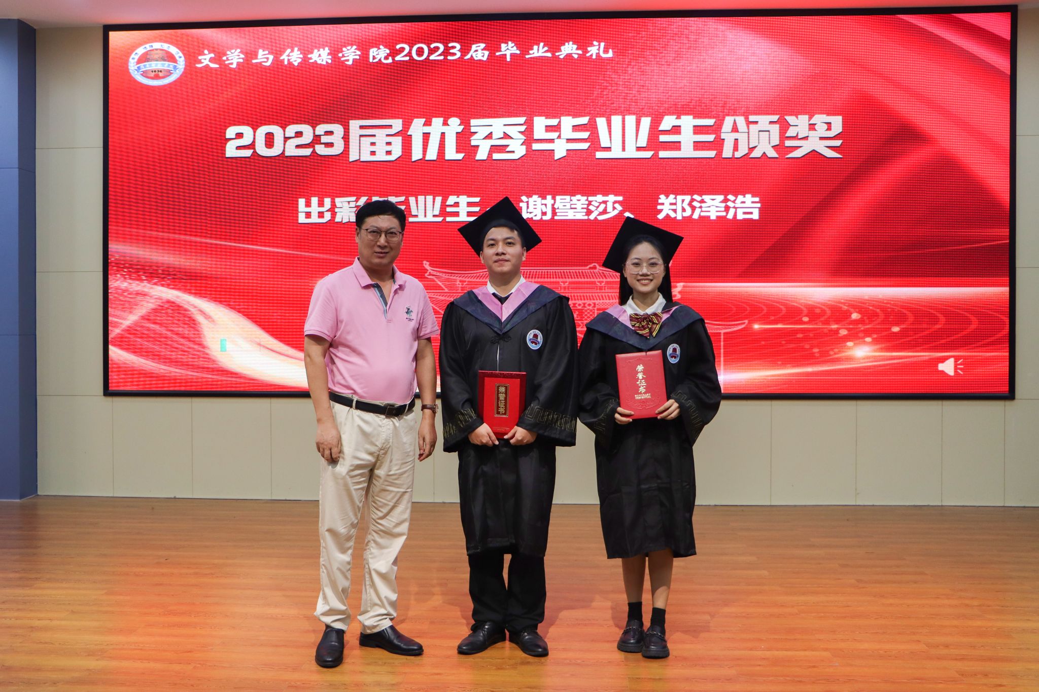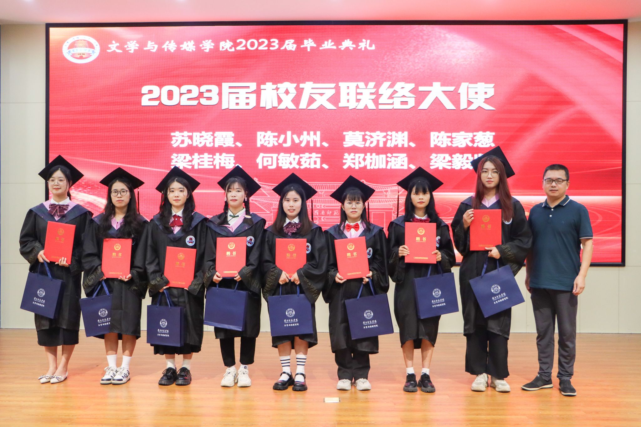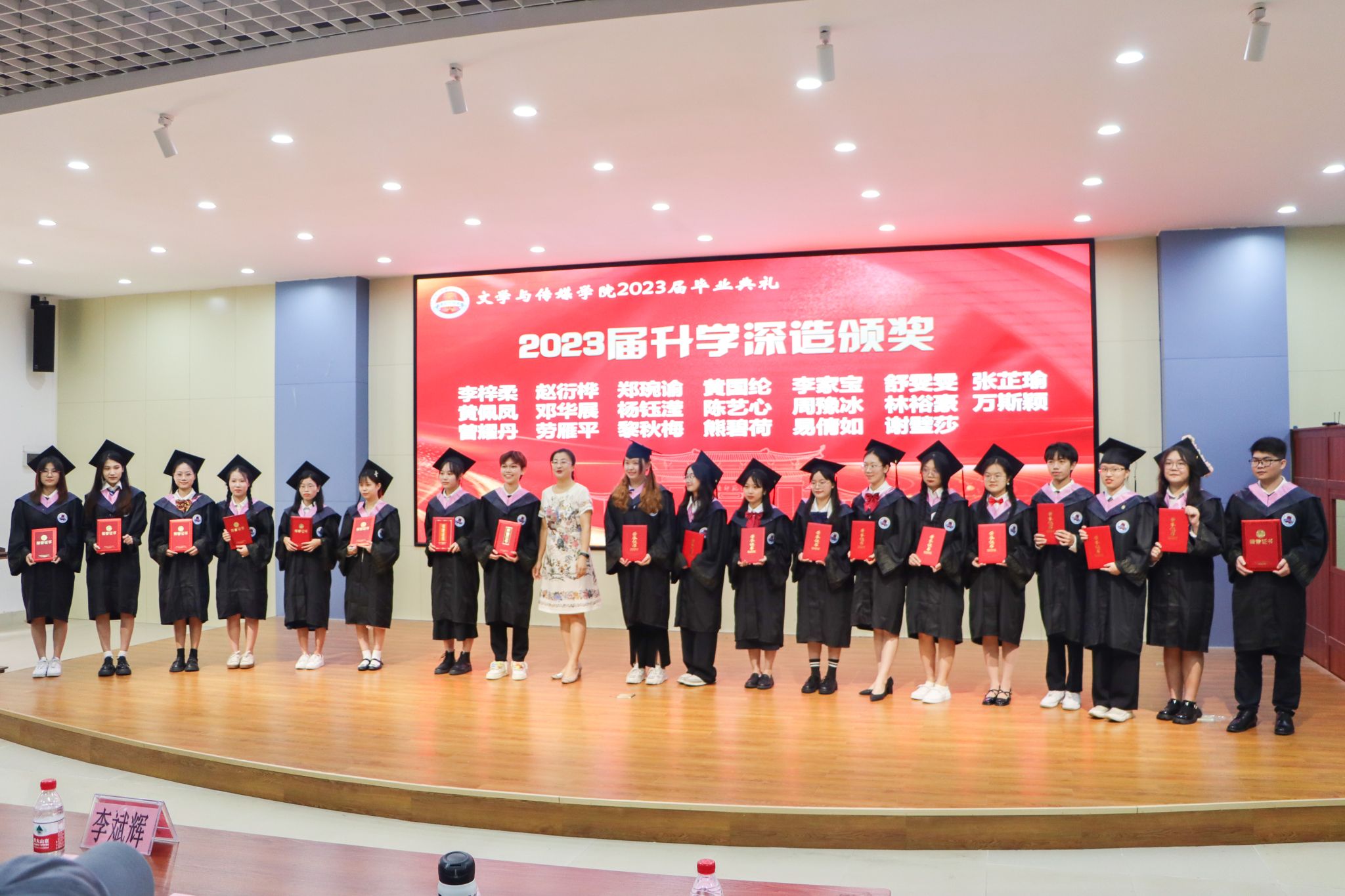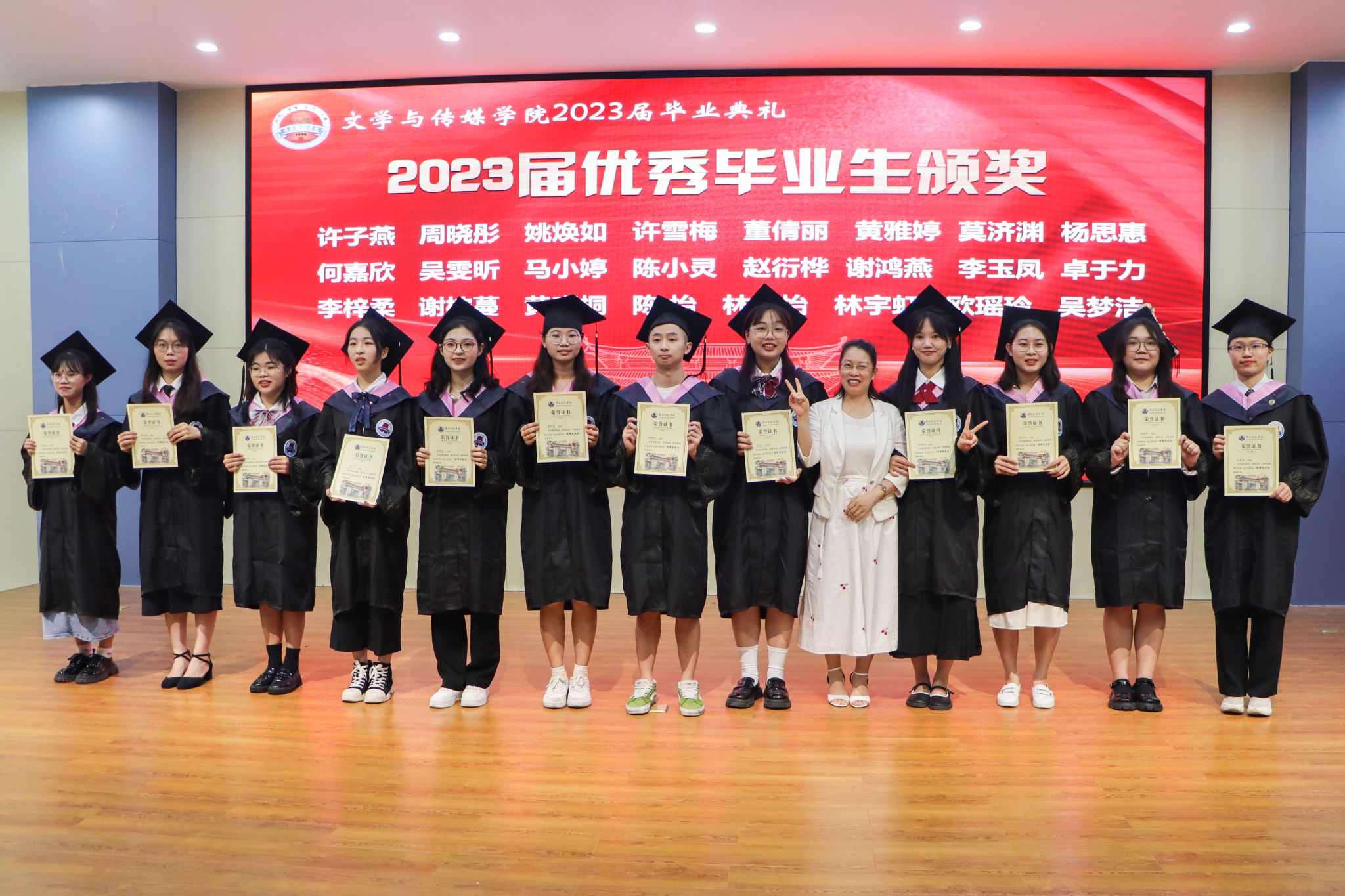 今年,文学与传媒学院共有36名同学被境内外高校录取,2名学子被评选为学校出彩毕业生,36名同学被评为校优秀毕业生,还有10名同学被聘请为校友联络大使。陈凯珍书记、李斌辉副院长等为他们颁奖并合影留念。文传学子在担当中历练、在尽责中成长,用每一份努力为学院争光,成就了更好的自己。