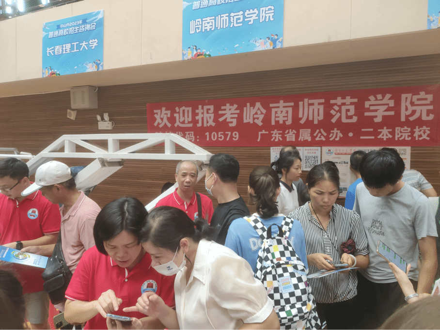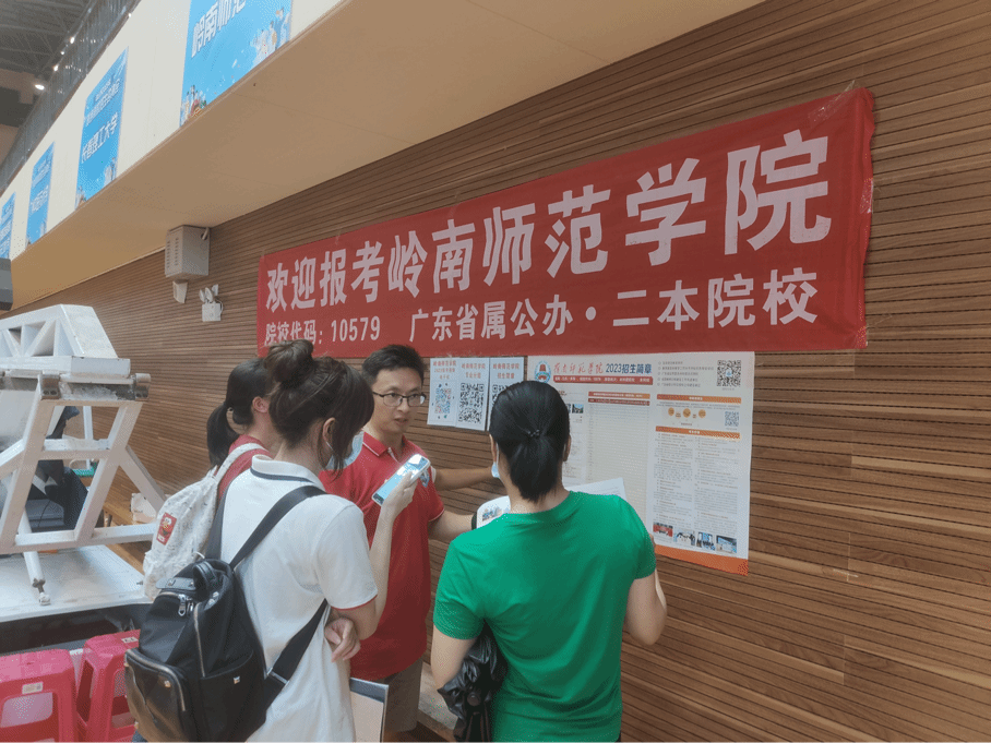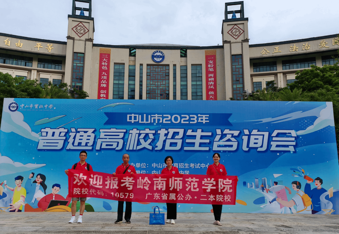 2023年6月25日 - 岭南师范学院的中山招生宣传队今日来到广东省中山市,参加了在中山实验中学举办的普通高校招生咨询会。宣传队为来自中山市各个中学的广大学生和家长提供了关于岭南师范学院今年招生政策及情况的详细介绍。