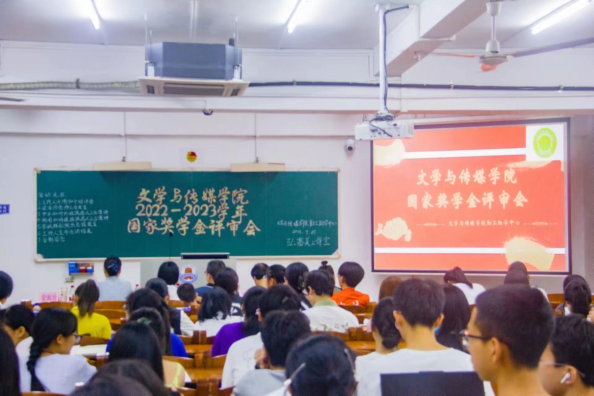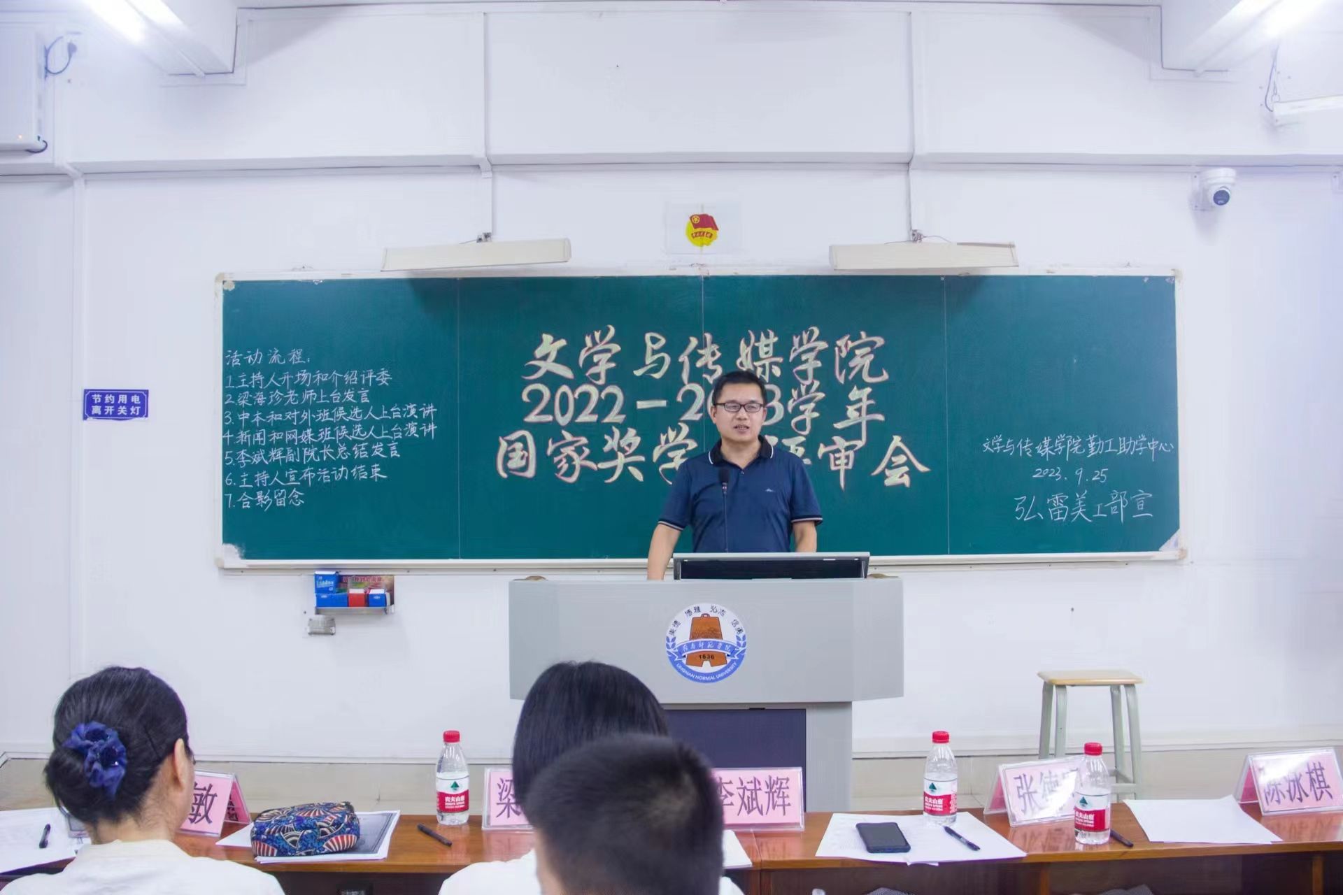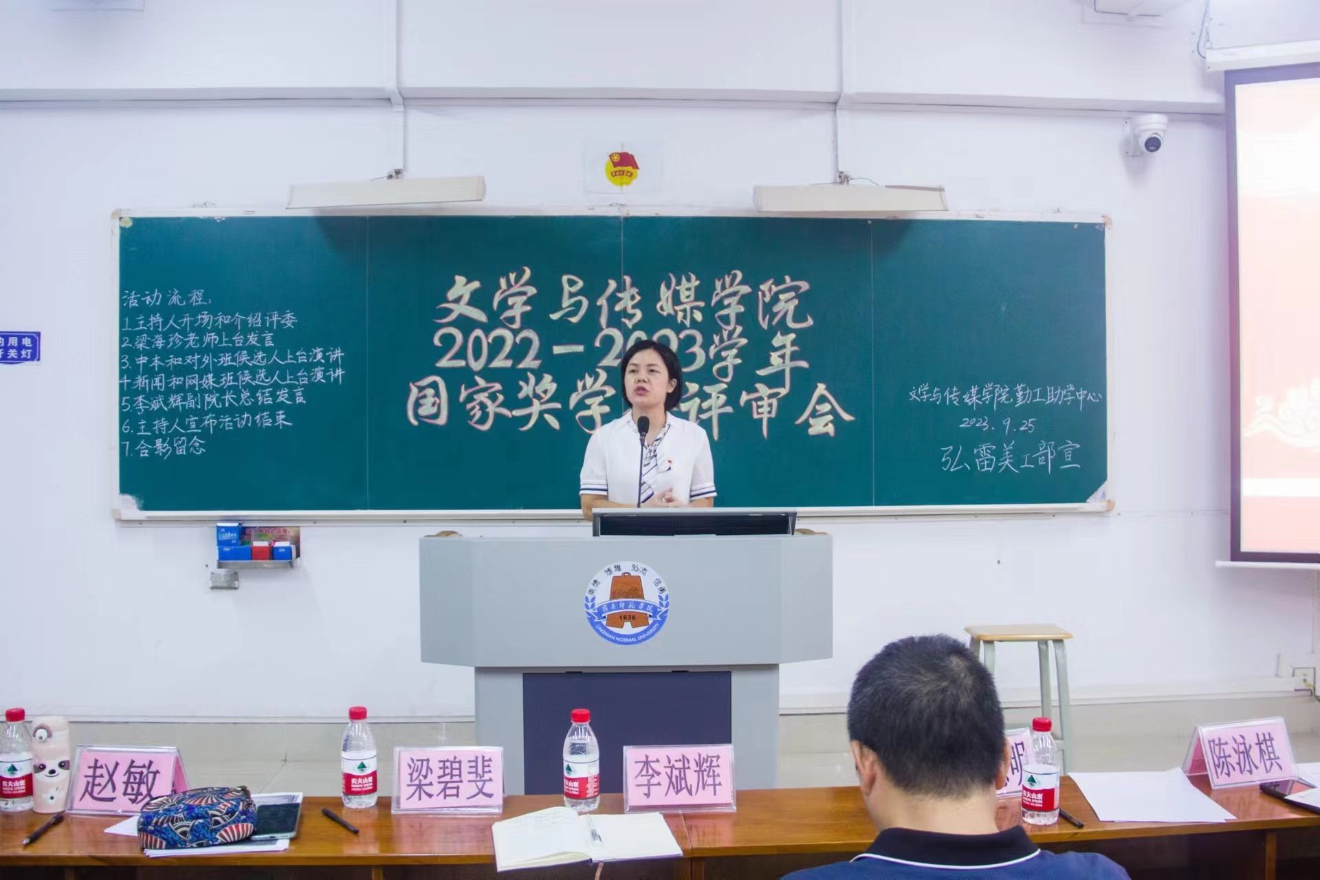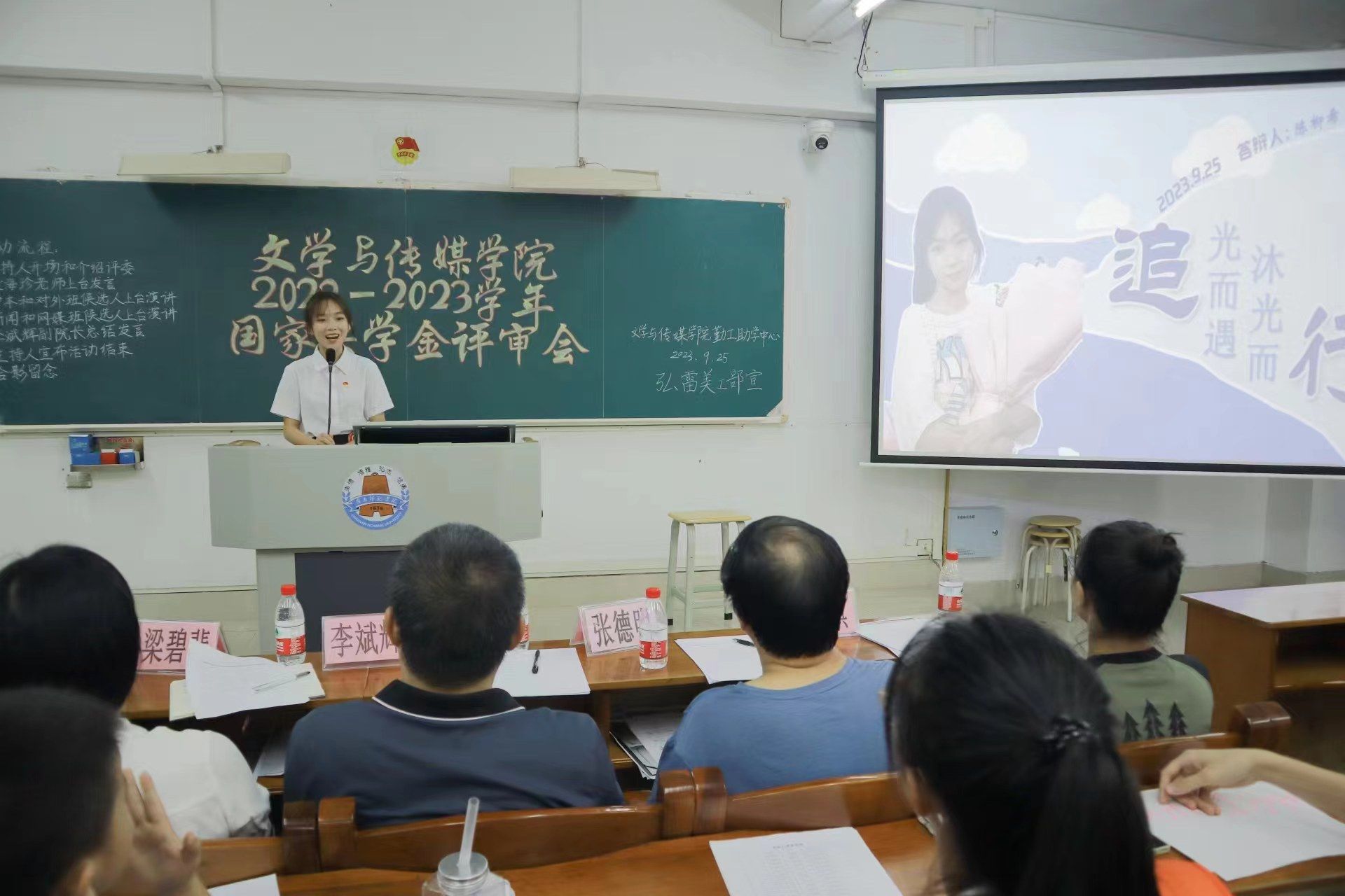 为充分发挥国家奖学金的引领与激励作用,奖助育人、表彰青春榜样,推进学院学风建设,鼓励学生向好向善向优发展,2022-2023学年文学与传媒学院国家奖学金评审会于9月25日晚在第三教学楼405室举行。出席本次评审会的领导嘉宾有文学与传媒学院党委梁碧斐副书记、李斌辉副院长、张德明老师、赵敏老师、梁海珍老师以及陈泳棋老师。