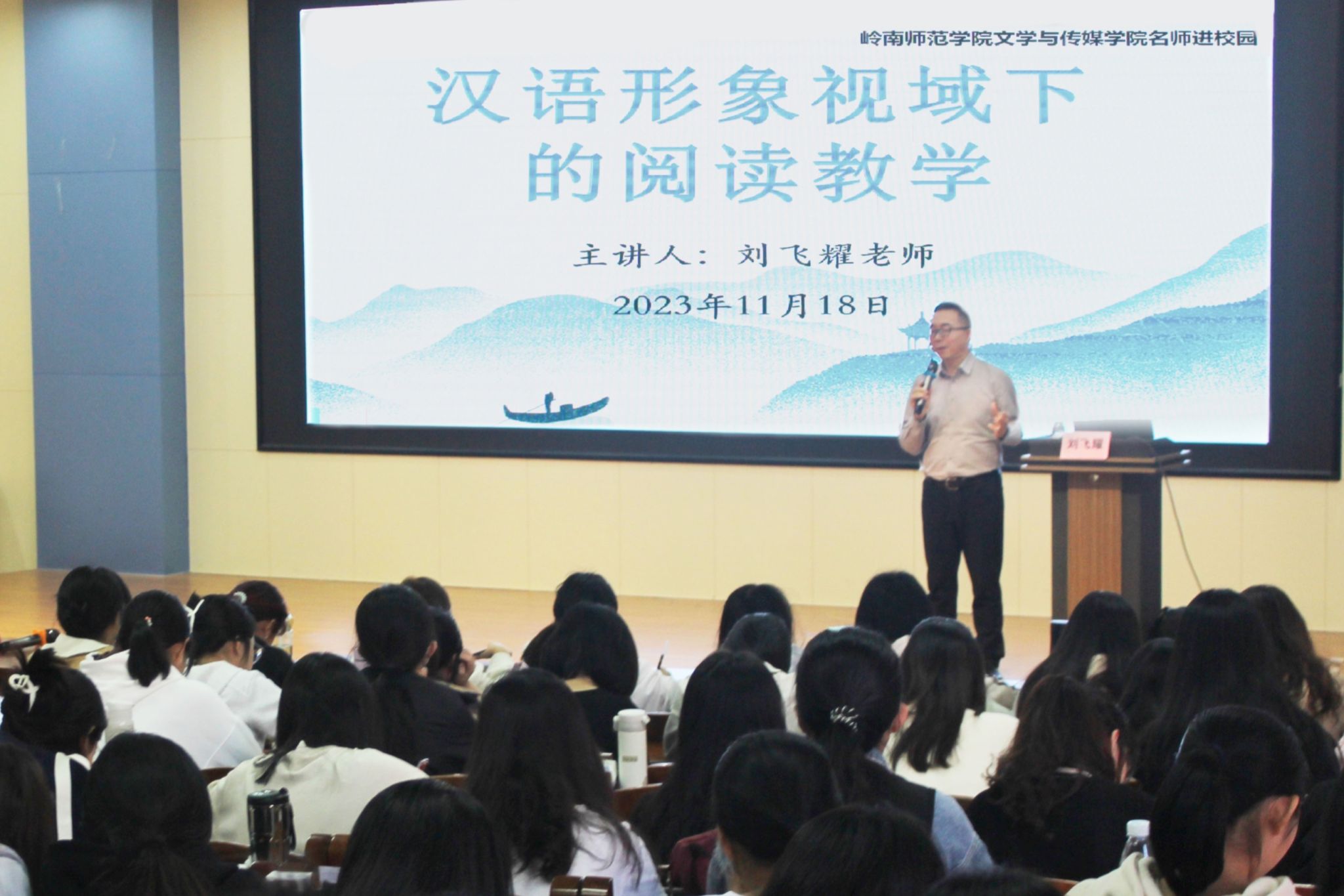 文传学院部分师范生、老师,以及湛江本地语文教师共300余人聆听了本次讲座。