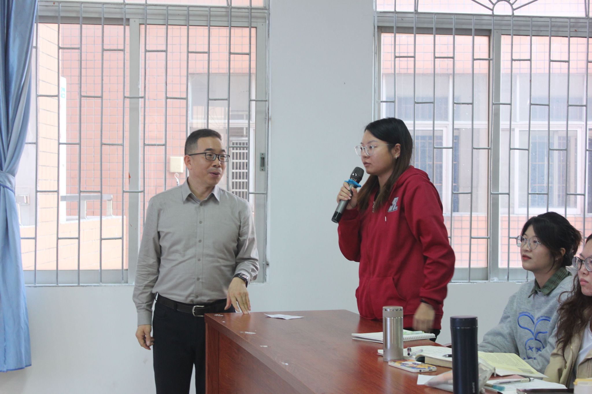 刘飞耀校长和同学互动(梁翠雯 摄)