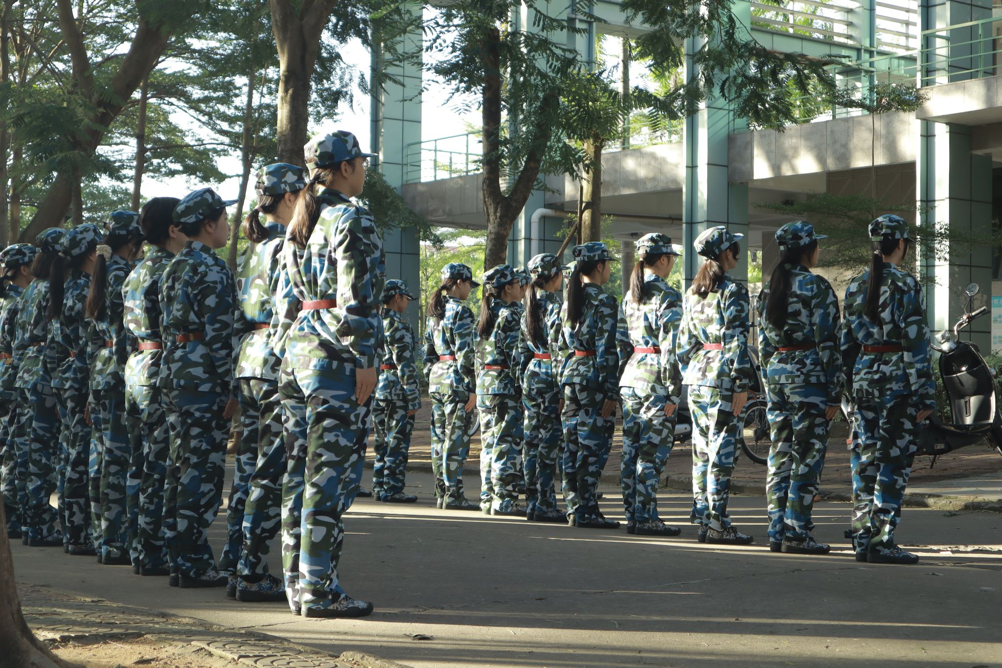 军训期间,同学们刻苦训练,不惧骄阳烈日。训练队列行进时,黄馨慧同学甚至把右脚鞋底磨穿,这种认真刻苦的精神深深感染了周围同学,此后训练效果更上一层。