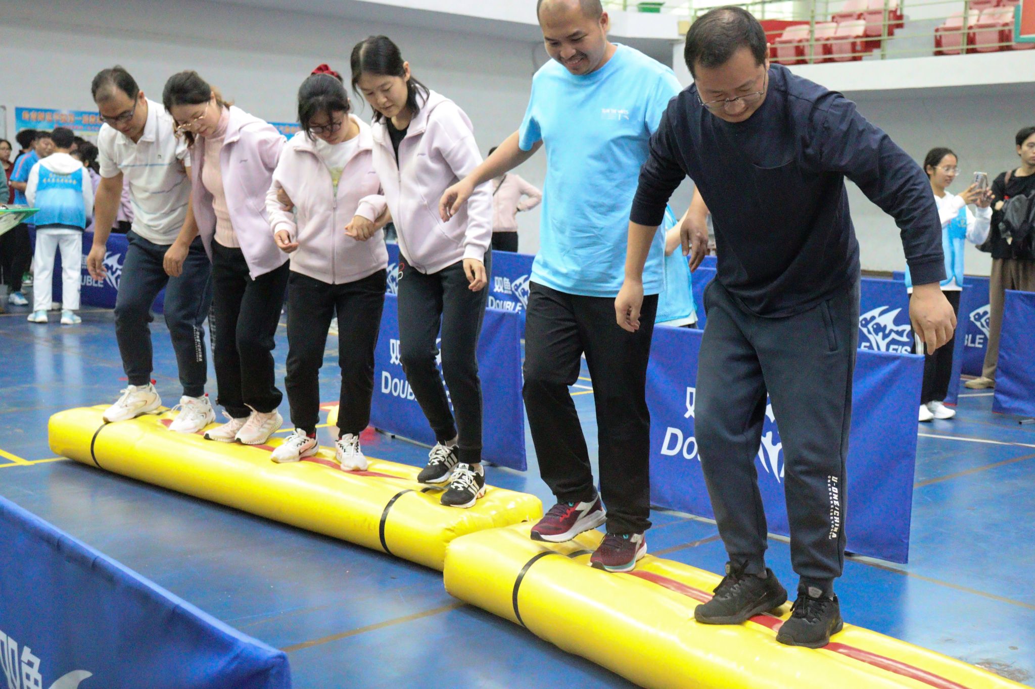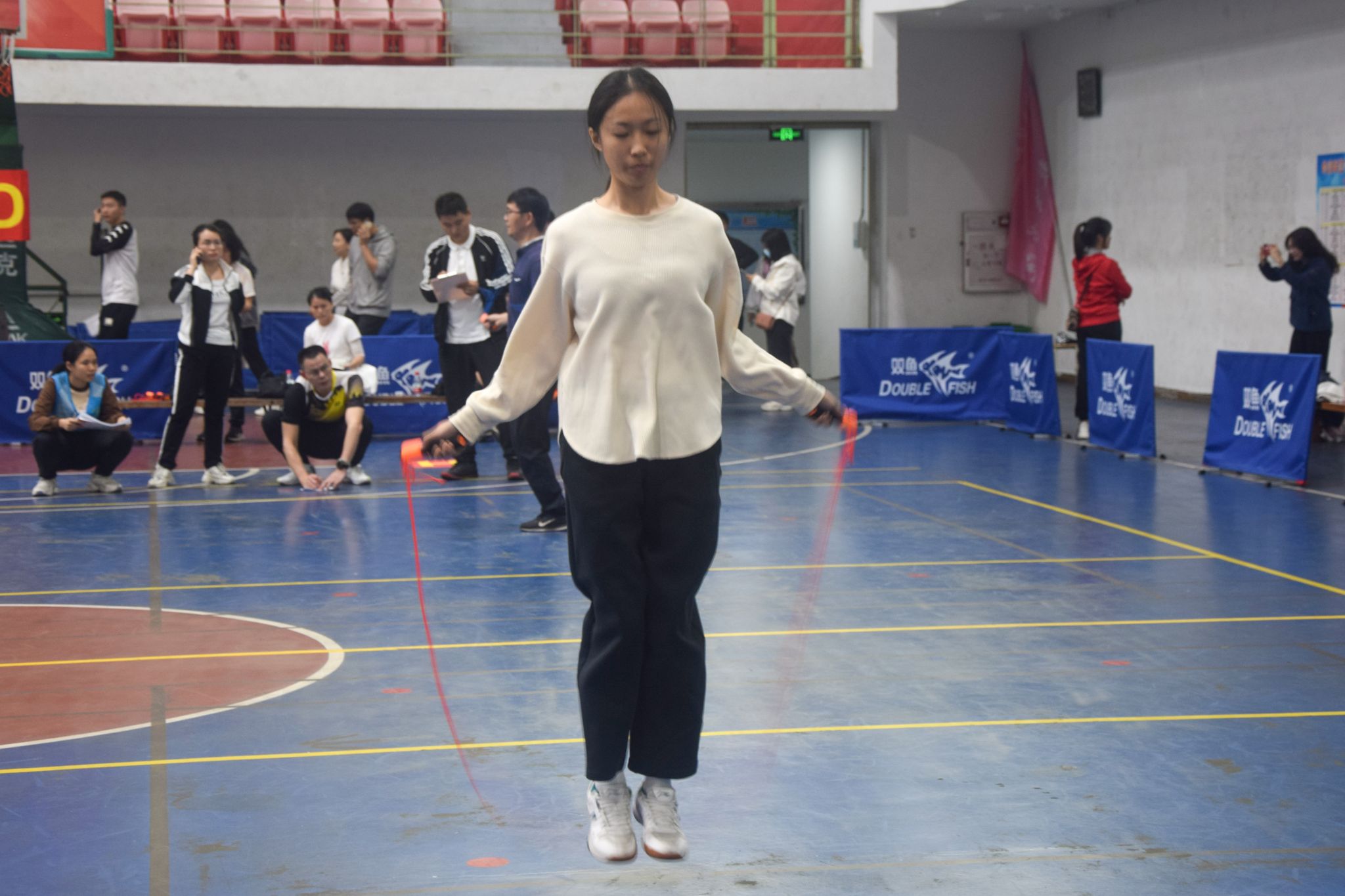 在单人项目中,参赛老师们沉着冷静,全身心投入比赛。或许投球不中,他们就迅速调整状态继续作战;或许毽子落地,她们就以最快速度重新开始,争取在一分钟内竭尽所能拿到高分;或许长绳卡绳,他们就快速整理步伐,重新起跳。他们将飞镖掷落标靶,就如将科研与教学上的难点逐个击破;他们将足球踢进得分格,就像达成最终的科研理想;他们将篮球投入篮中,就像将学子抛至人生的最高目标。