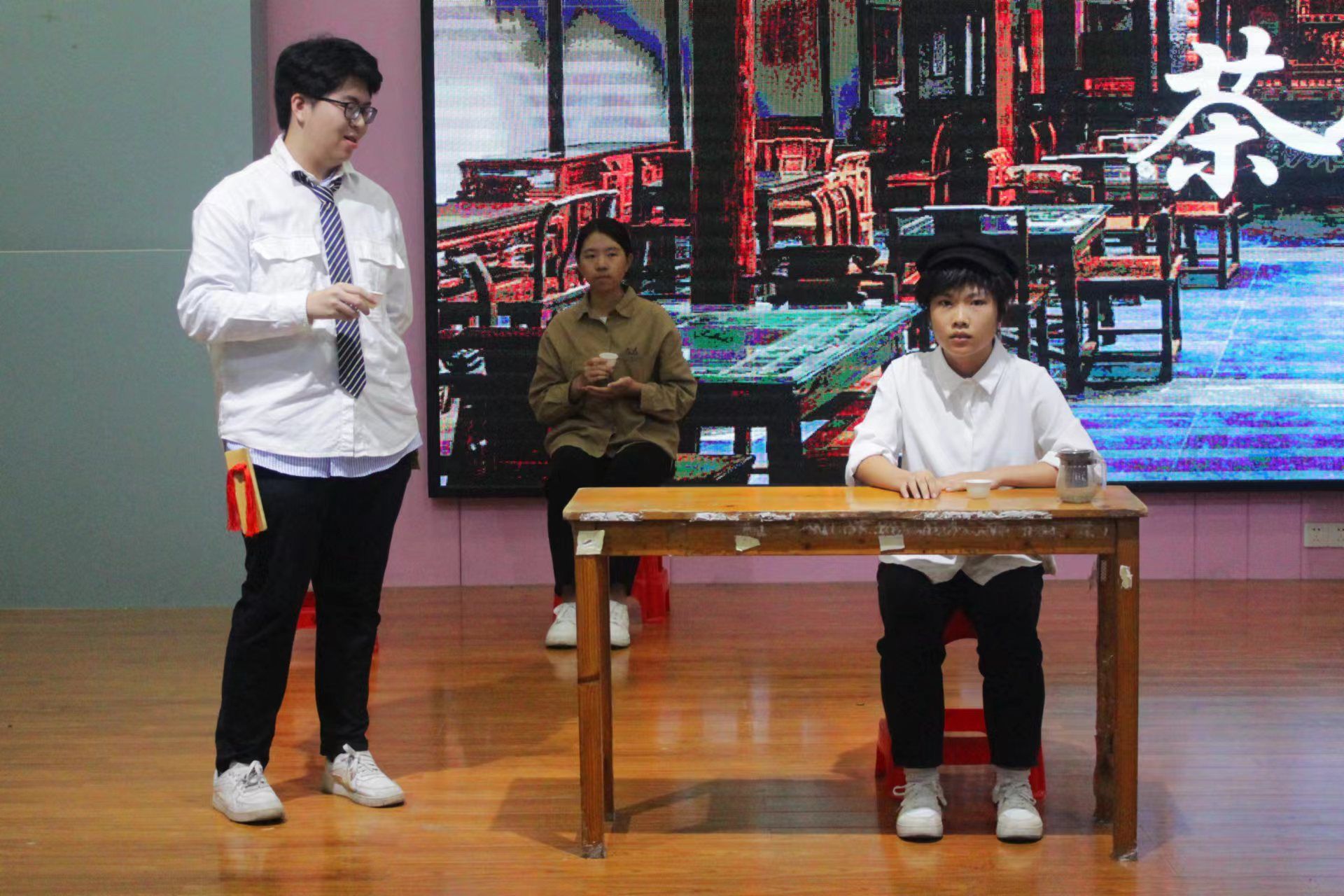 《孔乙己(改编)》课本剧表演现场(李芯蕊 摄)