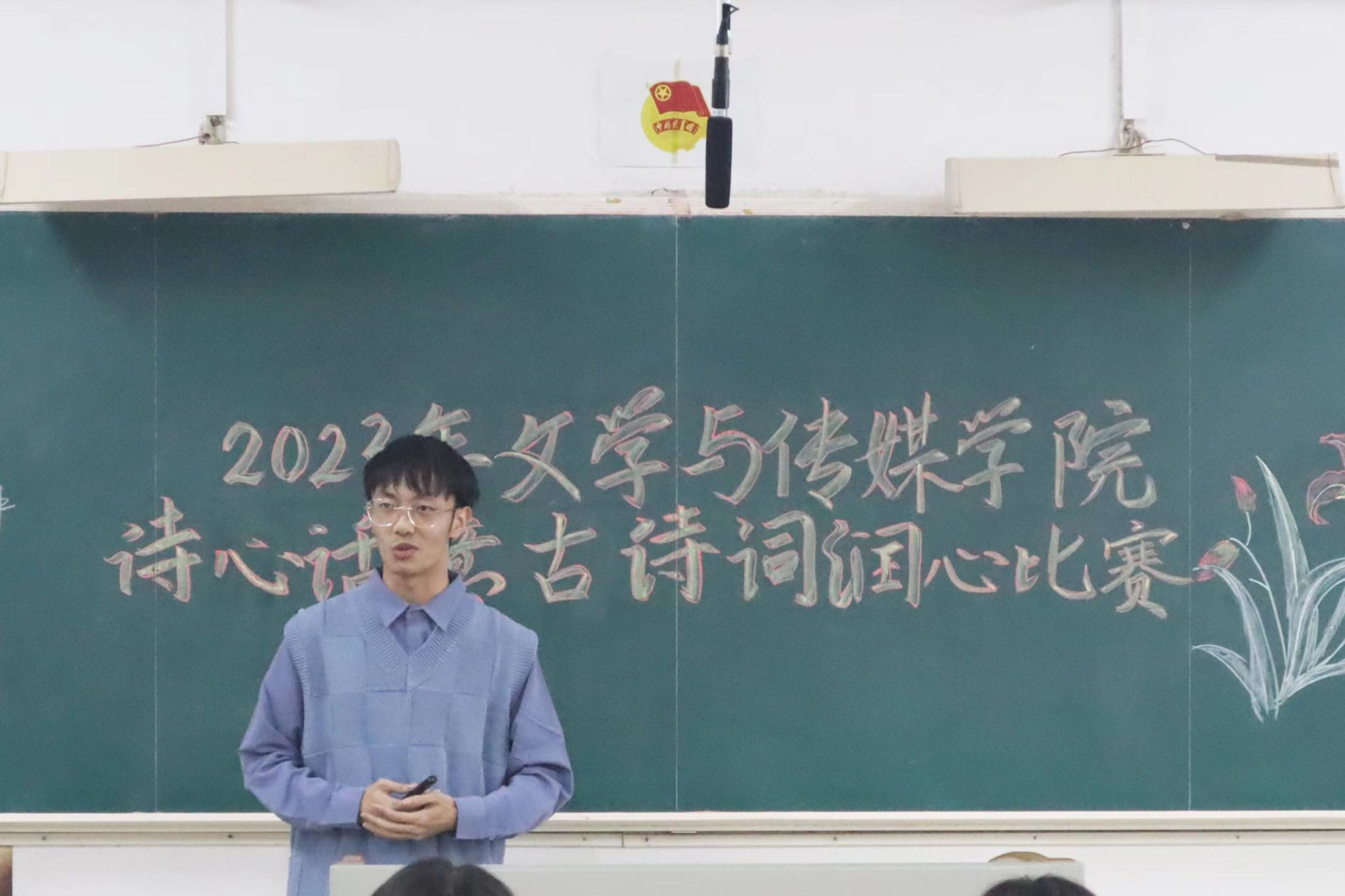 本次古诗词润心比赛共有十四位选手,每位选手依次上台根据诗词内容和感悟进行分享,限时5分钟。比赛时,各位选手各显神通,充分展示自身对诗词的感悟体会。