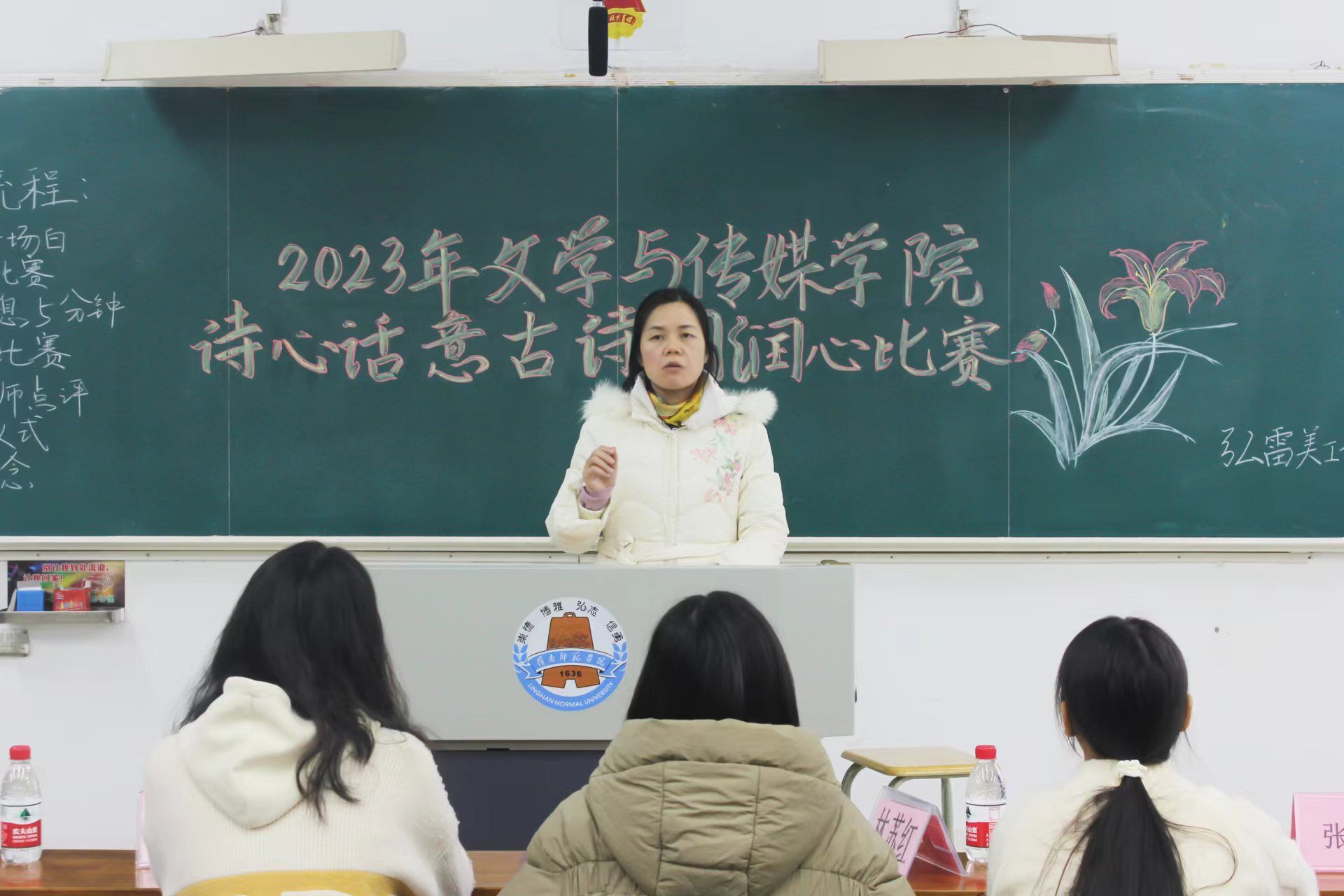 为进一步增强大学生心理健康意识,推动我院心理健康教育内容与形式创新。12月20日,心悦驿站在第三教学楼405室举行2023年文学与传媒学院“诗心话意”古诗词润心比赛。出席本次活动的嘉宾有文学与传媒学院党委副书记梁碧斐,心悦驿站指导老师林苏红,椰风新韵干部何婧学和张柏思。
