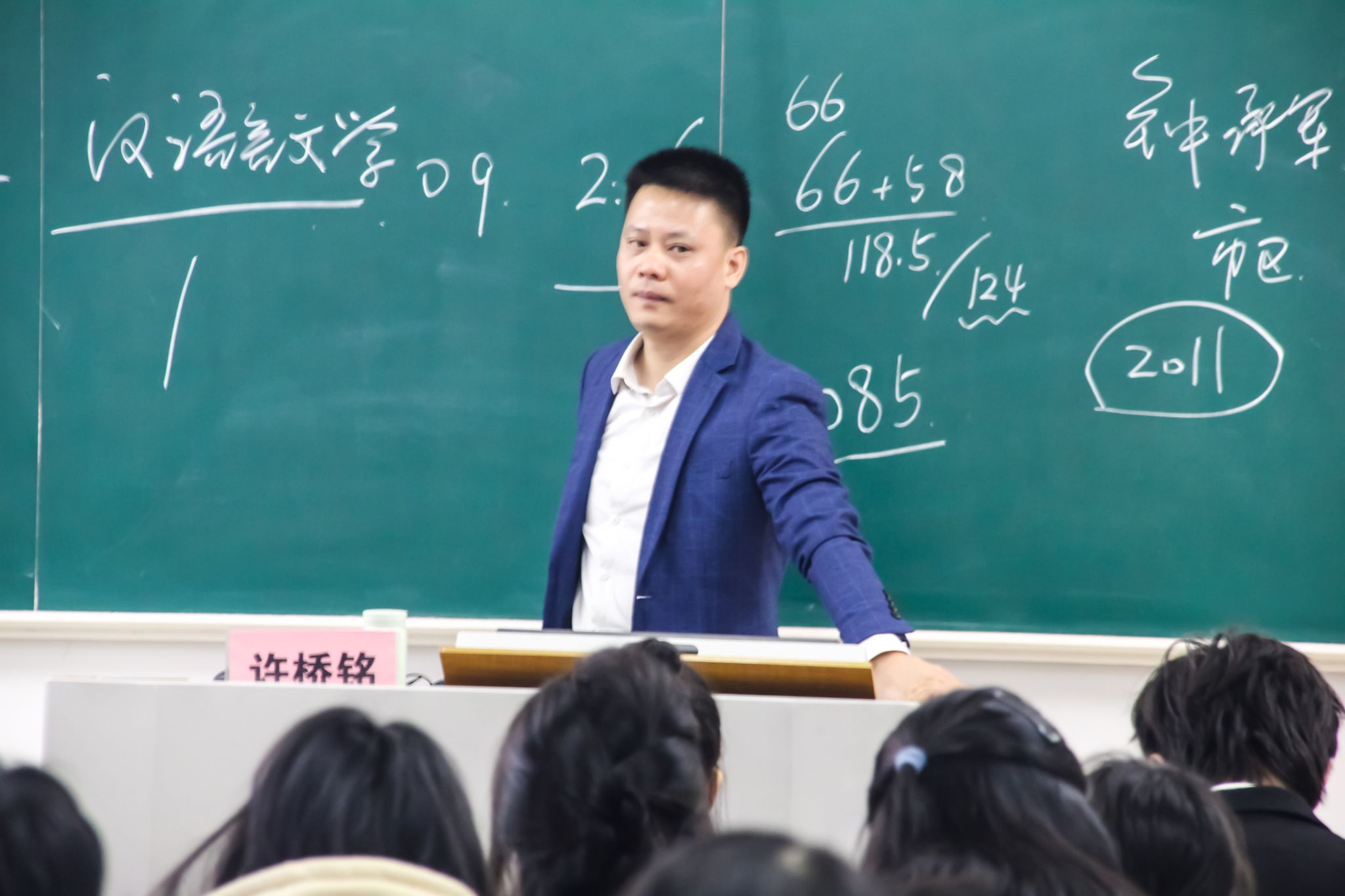 讲座的开始,许桥铭校友在黑板上写下“赢”字,并对这个字进行拆解,并解释道,“亡”代表着危机意识,“口”代表着沟通能力,“月”代表着时间,“贝”代表着财富及取财有道,“凡”代表着平常心。我们要在人生道路上取得胜利,就得具备这些条件。接着,许桥铭校友向同学们分享他的成长经历,在大学期间做了两件对他人生道路影响较大的事:一是在大一做了生活委员,大三做了班长,他表示,“成为班干锻炼了我的组织管理协调能力,这在以后的工作很受用”;二是加入太阳谷文学社,通过发表文章,锻炼写作能力,积攒写作经验。