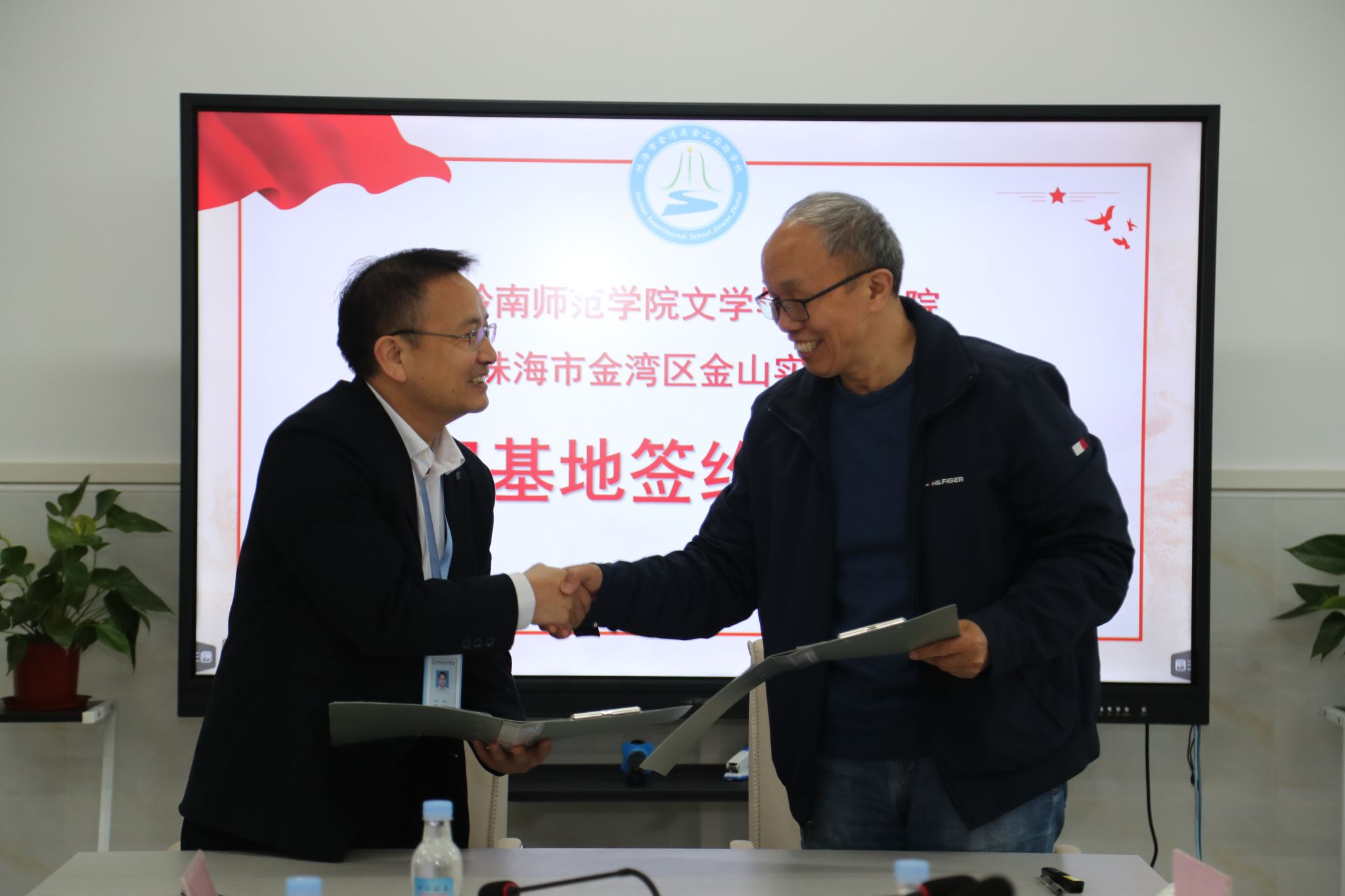 3月11日上午,陈凯珍书记、阎开振院长、梁碧斐副书记等一行人继续奔赴珠海市金湾区金山实验学校开展教育实习基地挂牌仪式,双方签署了《岭南师范学院校外实习基地建设协议书》。
