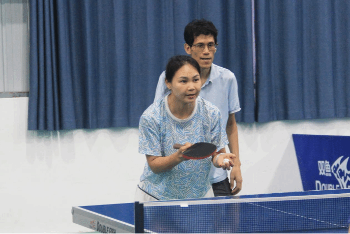 本次教职工乒乓球比赛设有男单、女单、男双、女双、混双五个项目,文学与传媒学院代表队积极备赛、参赛,凭借着对乒乓球的热爱和扎实的球技,在赛场上展现了卓越风采。首日开局比分落后,但选手们并未气馁——一次次挥拍、一次次跑动,飞舞的不仅是汗水,还有他们昂扬的心。在比赛中,文学与传媒学院的教师们展现了出色的球技,更展现了高度的团队合作精神。教练与场外选手密切关注比赛情况,并及时叫停,根据对手打法特点与赛场局势灵活应对,为参赛选手提供了许多有效建议。他们相互鼓励、配合,共同面对挑战,充分展现了文学与传媒学院教师团队的凝聚力和向心力。短暂的落后并不是结束,及时调整状态后,老师们或是迅速反击,或是稳健防守,抓紧时间成功扭转比分,又乘胜追击,赢得了在场观众的阵阵喝彩。