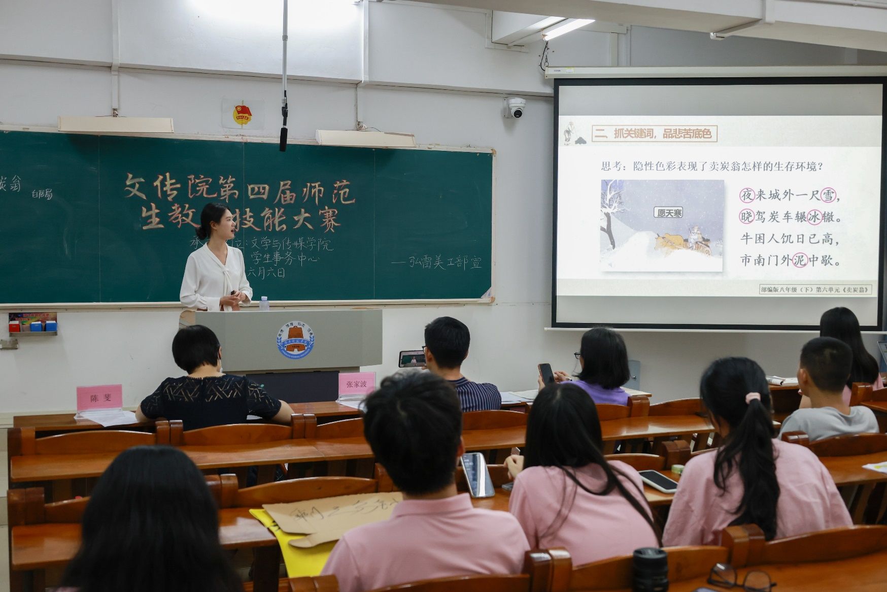 为了提升我院学生教育教学能力,提高教学技能水平,文学与传媒学院于6月6日晚在第三教学楼405室举办了第四届师范教学技能大赛。本活动旨在搭建教学技能交流平台,以赛促学、以赛促教、以赛促训,更好地提升学生的专业素养。