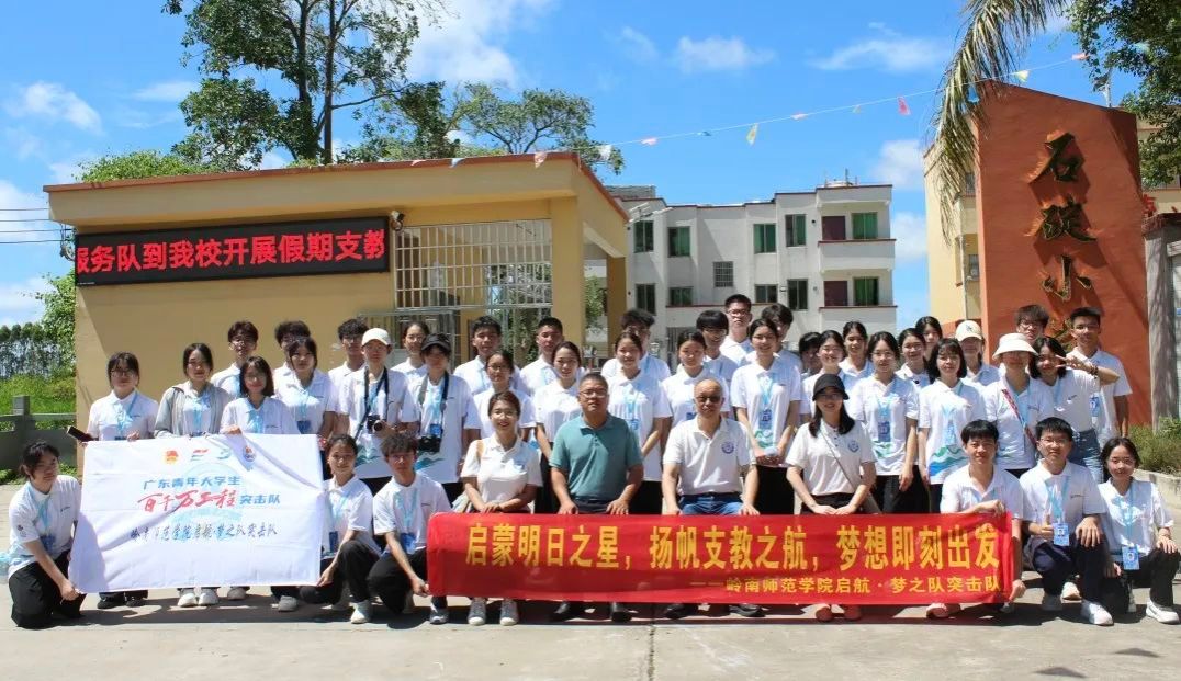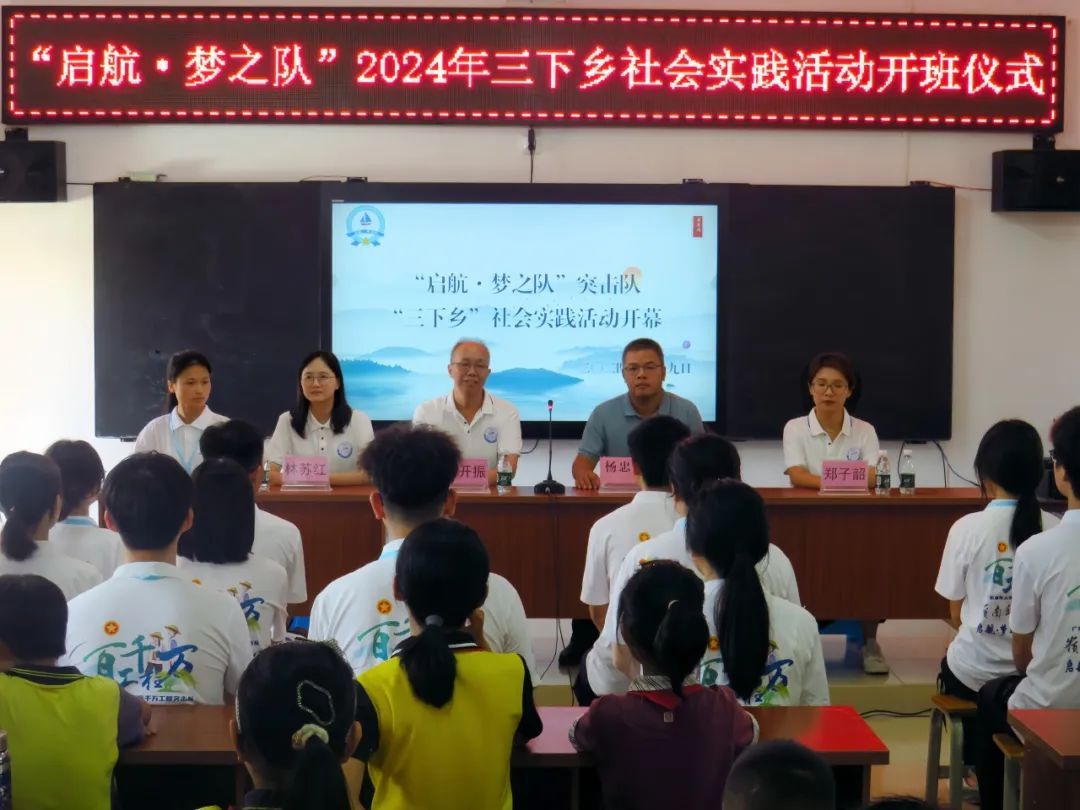 7月9日,阎开振院长一行人出席了“启航·梦之队”突击队在吴川市振文镇石碇小学举行的开班仪式。在仪式上,领导们对队员们寄予厚望,鼓励他们要牢记“三下乡”活动的使命和责任,严格遵守各项规章制度,发扬吃苦耐劳的奉献精神,将个人所学融入实践,全身心投入“三下乡”支教活动。