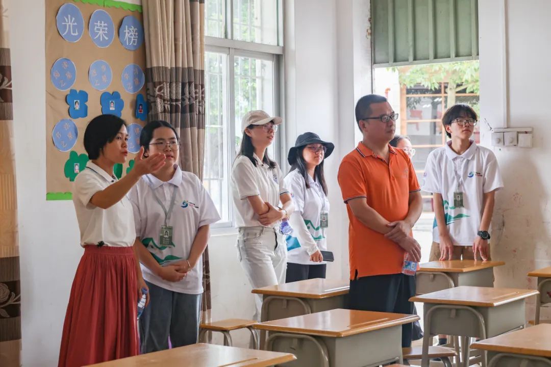 随后,领导们来到了湛江市坡头第二中学,去了解“琢光”突击队的工作情况。在教学中,“琢光突击队”以趣味课堂教育为主,让孩子们在快乐中学习。学院领导与队员们深入交流,对队员们寓教于乐的教学方法给予了高度赞扬。领导们强调,在注重学科教育的同时,还要积极开展特色课程,让学生能够充分参与到课堂互动之中。此外,领导们还叮嘱队员们要注意安全,加强与支教学校的交流,大胆实践并做好后期工作,积极参与相关的实践投稿活动。