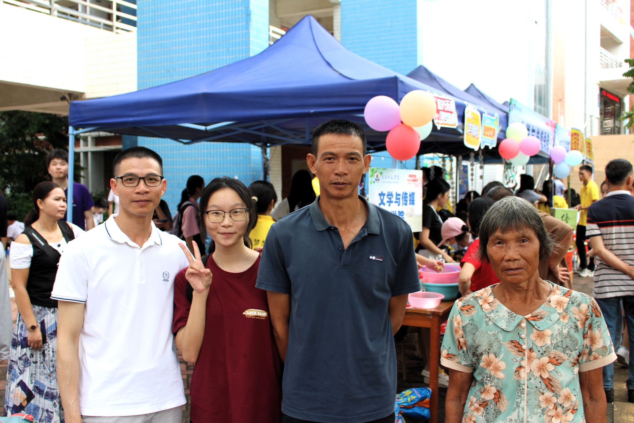 新生与家人们合影留念
