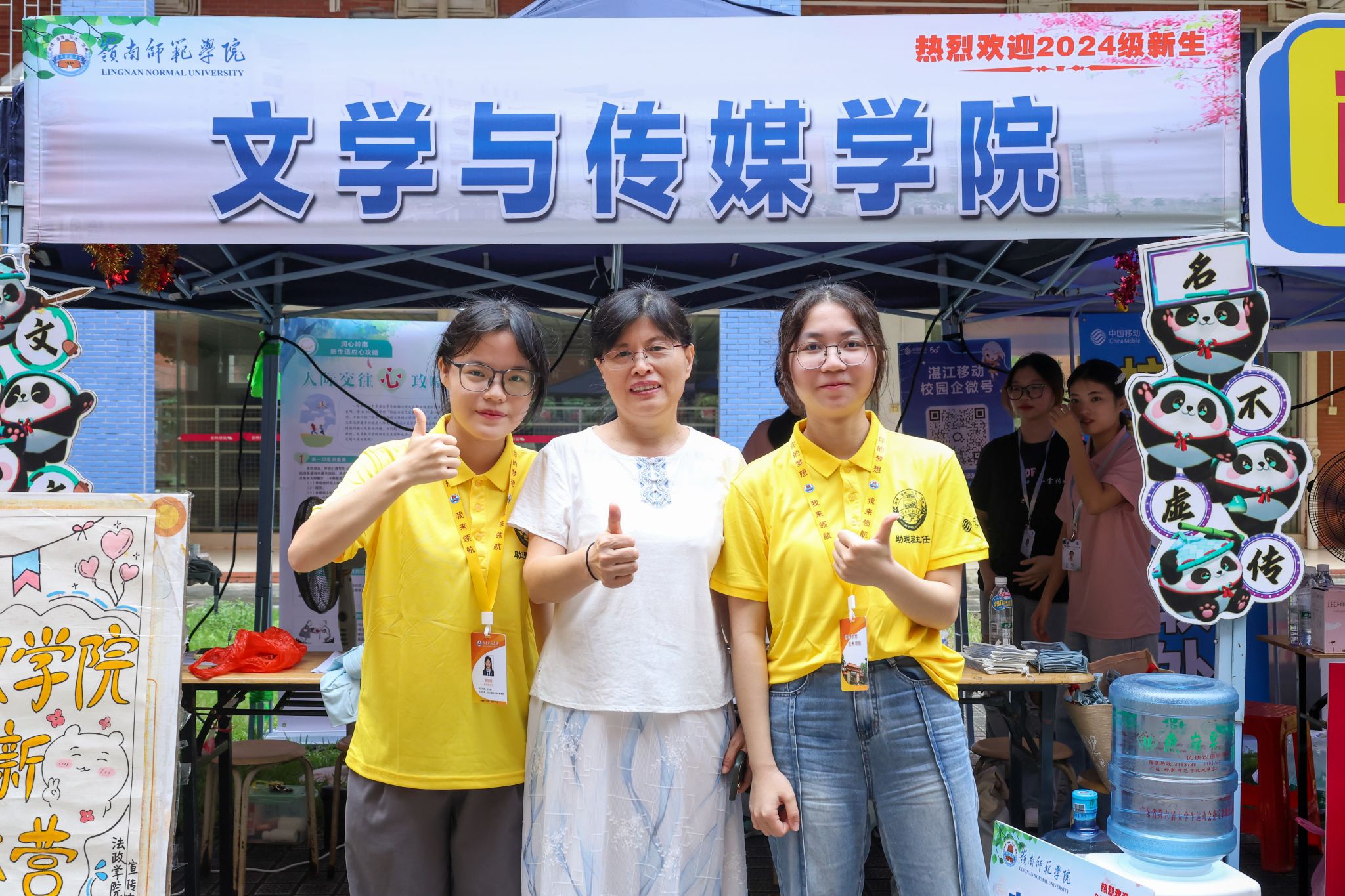 文学与传媒学院党委书记陈凯珍、党委副书记梁碧斐等领导老师亲临迎新大本营,亲自指导迎新工作的各项事宜。两位书记都对新生寄予了厚望,陈凯珍书记首先对新同学们表示热烈欢迎,她希望大家能够注重将个人发展融入国家大局之中,通过系统的知识教育培养科学严谨的学习态度,充分利用大学四年的宝贵时光,不断充实自己,提升自我,以更好地服务国家发展。梁碧斐副书记则强调,大学是一个新的征程,也是一个新的起点,她希望新同学们能够迅速适应大学生活,继续保持拼搏精神,在大学这个新的赛道上继续奔跑,努力成为优秀的文传学子。