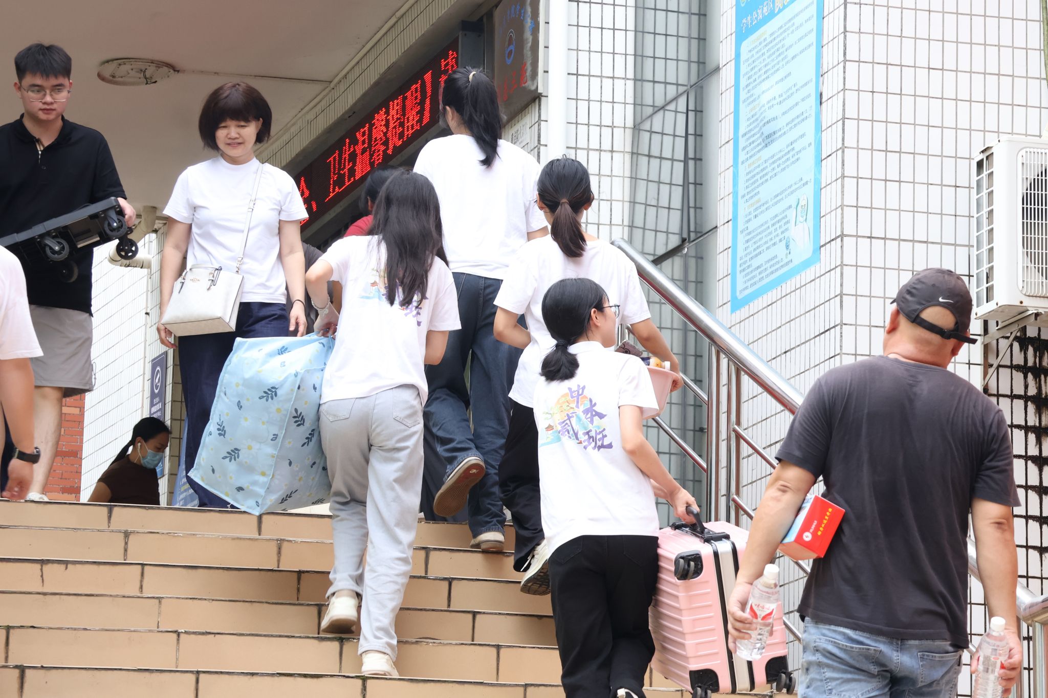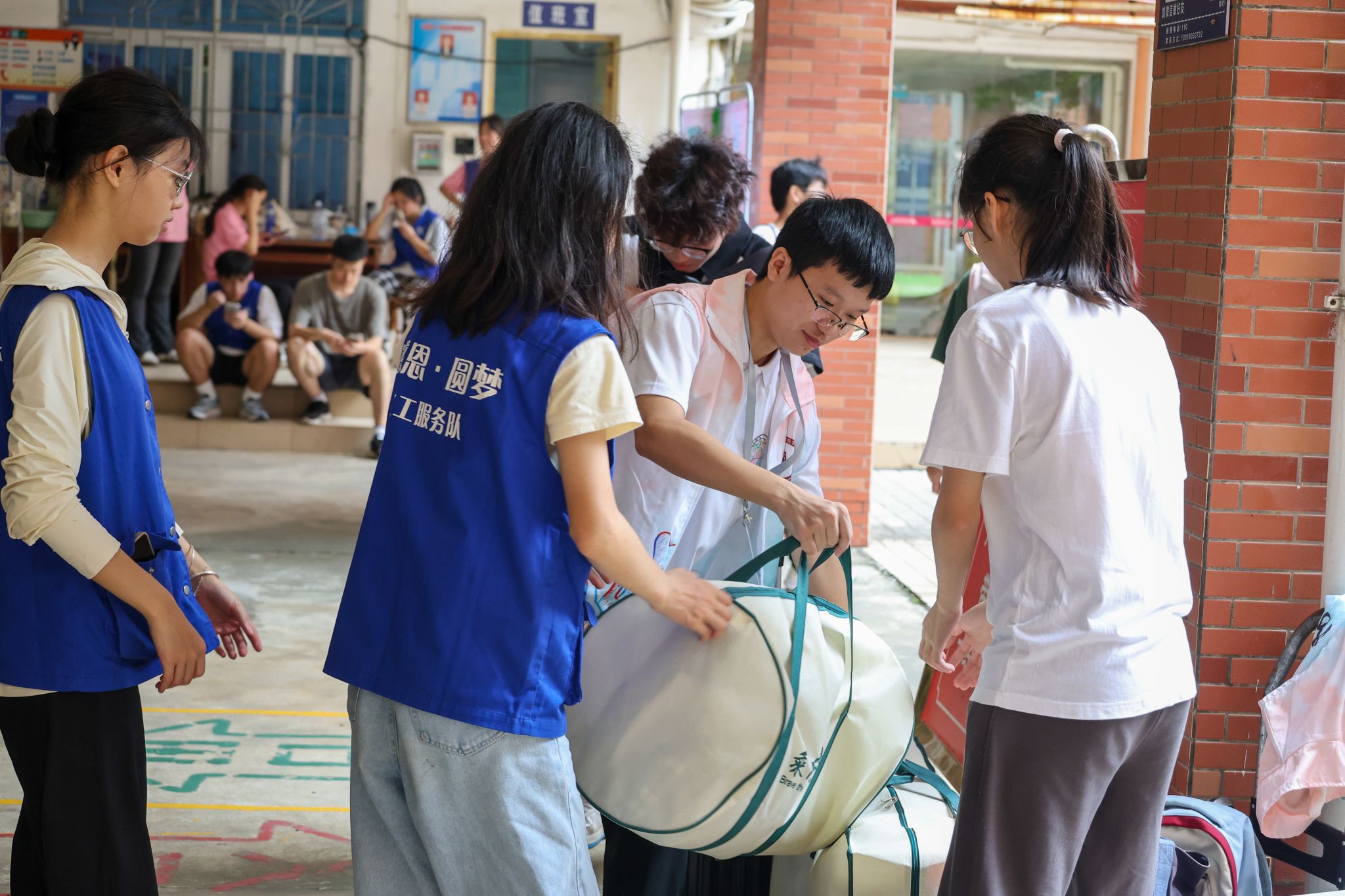 志愿者们接过新生的行李