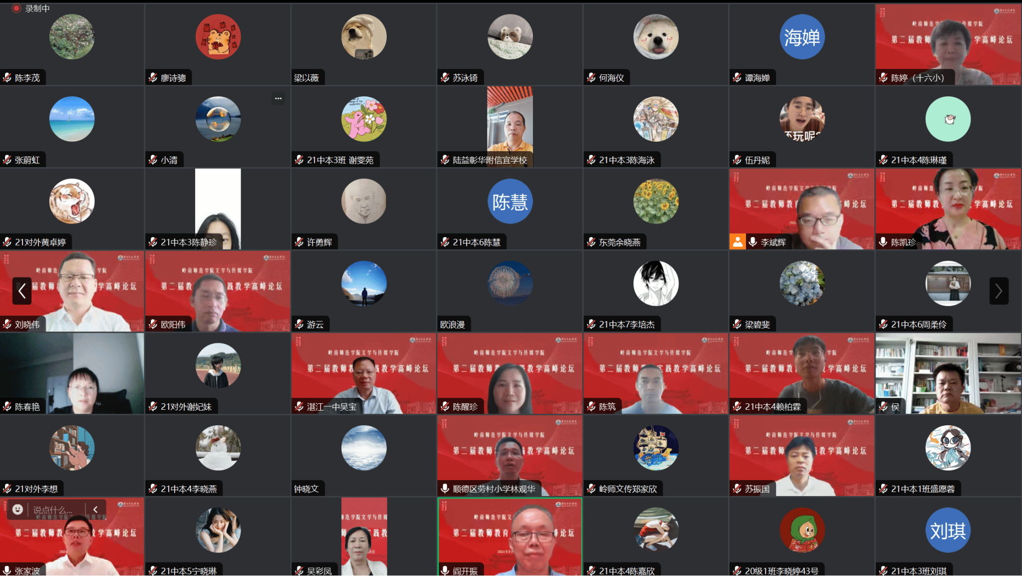 9月28日上午,文学与传媒学院在线上成功举办第二届教师教育实践教学高峰论坛。来自珠三角、粤西地区的30余名中小学校长、教育行政部门领导参加论坛,汉语言文学专业2021级实习指导教师和实习队长也参与论坛。学院党委陈凯珍书记致辞,阎开振院长作总结。论坛由语文基础部主任张家波主持。