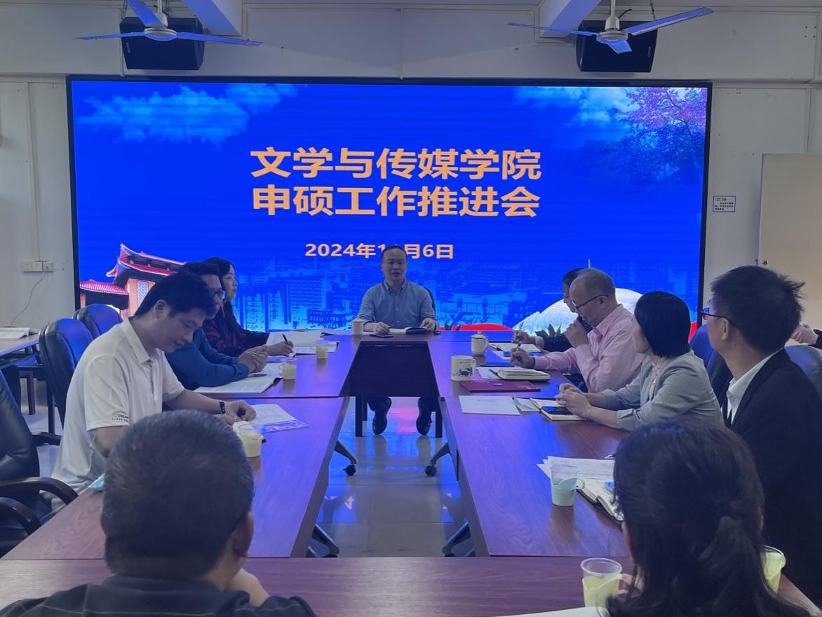 为了进一步推动硕士学位点扩点工作,文学与传媒学院于11月6日在学院会议室召开第二次申硕工作推进会。副校长吴涛率科研处处长刘群慧、副处长金肖等一行4人莅会指导。文学与传媒学院院长阎开振主持会议,党政领导班子全体成员和各学科带头人、学术骨干参加调研。