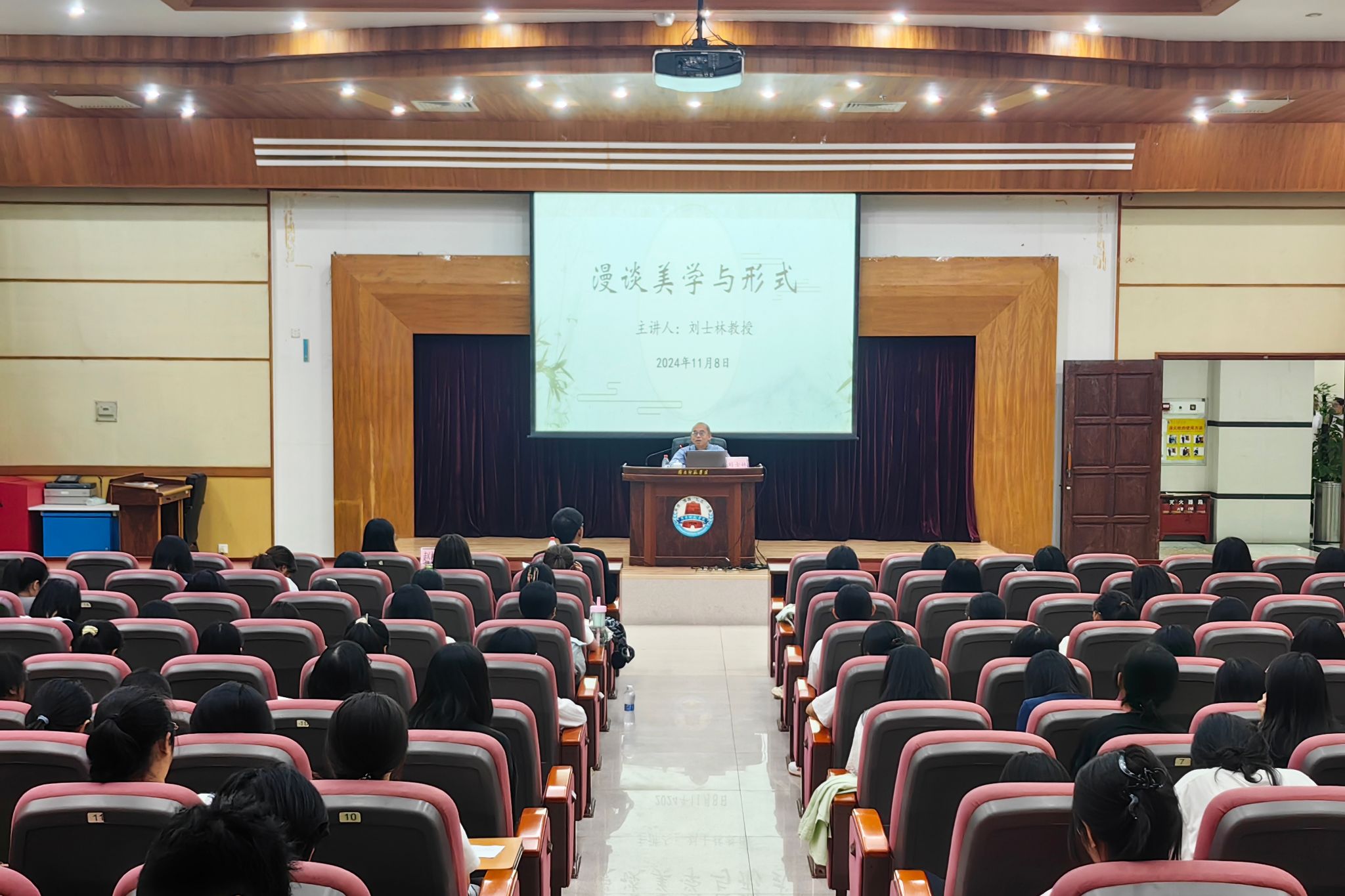 为了更好地贯彻国家德智体美劳全面发展的理念,加强同学们的美学教育,提高同学们的美学水平,11月8日晚,文学与传媒学院于图书馆学术报告厅开展主题为“漫谈美学与形式”的学术讲座。本次讲座邀请了上海交通大学城市科学研究院院长刘士林为主讲人,我院史习斌副院长及160余名师生参加讲座。