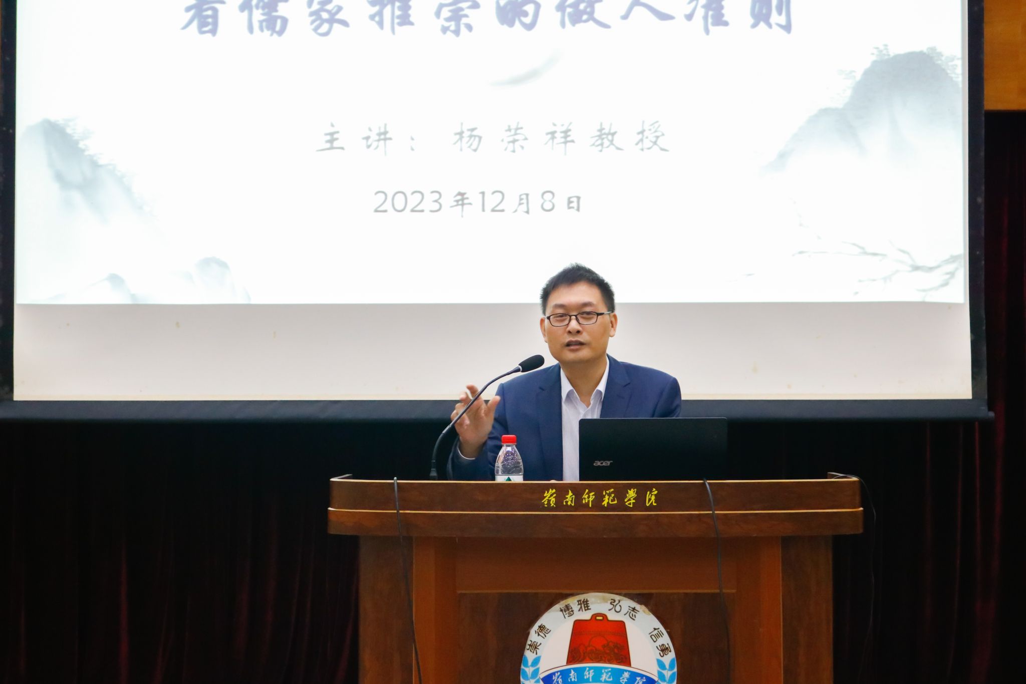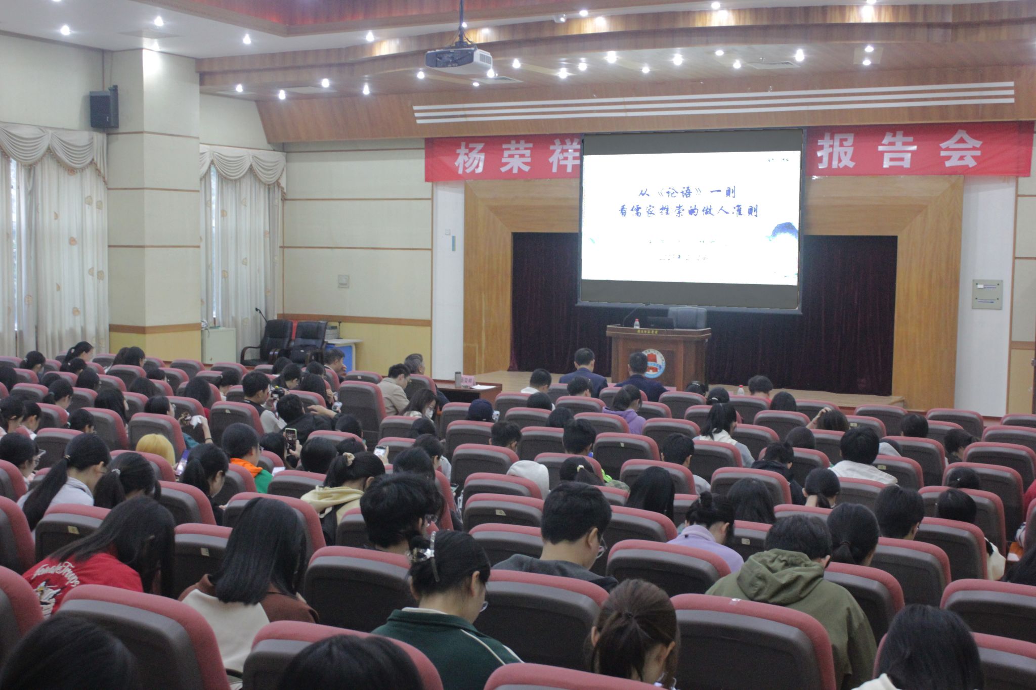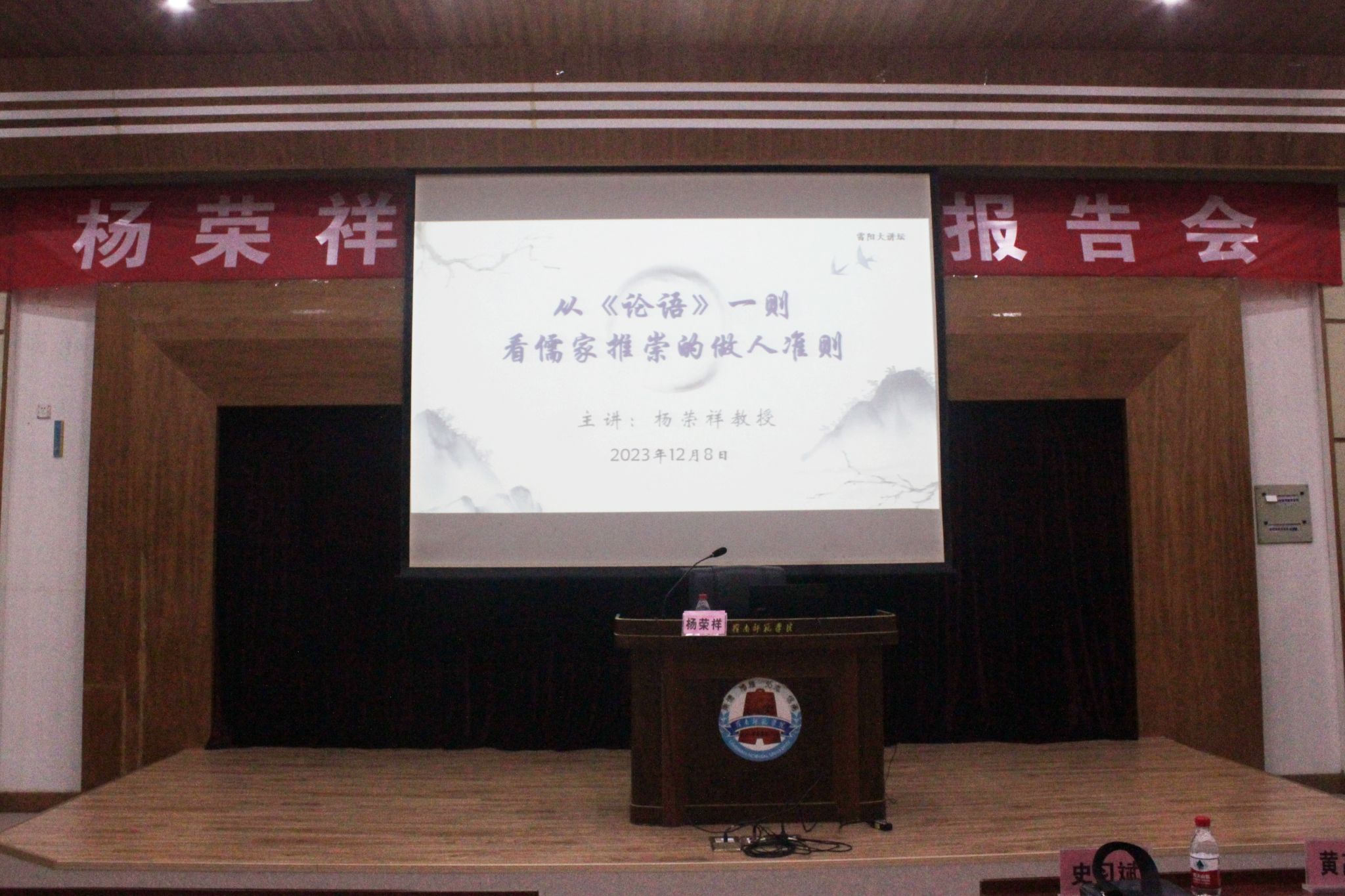 2023年12月8日上午北京大学中文系二级教授杨荣祥先生在我校图书馆学术报告厅开展了一场题目为《从〈论语〉一则看儒家推崇的做人准则》的讲座。文学与传媒学院副院长朱习文教授、文学与传媒学院副院长史习斌教授、文传学院的部分教师和学生参加了本次活动。