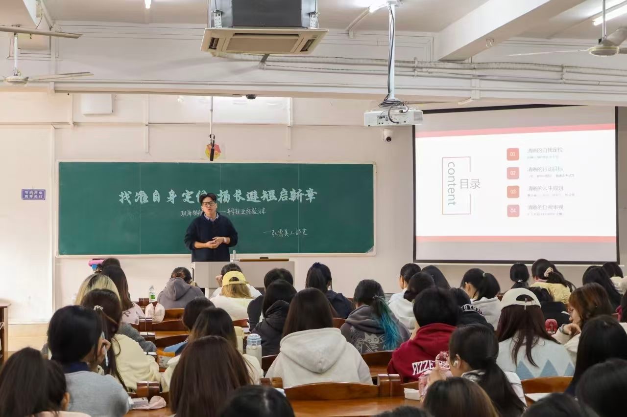 2025年,文学与传媒学院紧扣“活力·文传”主题,深化美育实践,将美育延伸至学术、就业与社团建设。学院优化“周末读书会”,提升学生思辨与审美能力;开展考研、公考、职海领航等系列就业指导,累计开展讲座14次,参与人数累计达两千余人,有效增强学生的职业竞争力。