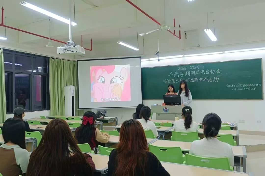 千色飞翔网络电台协会发挥声音与新媒体特色,通过配音、音频大赛及展演,全方位锻炼成员的声音塑造、音频制作及创意编导能力,在合作中增进交流。