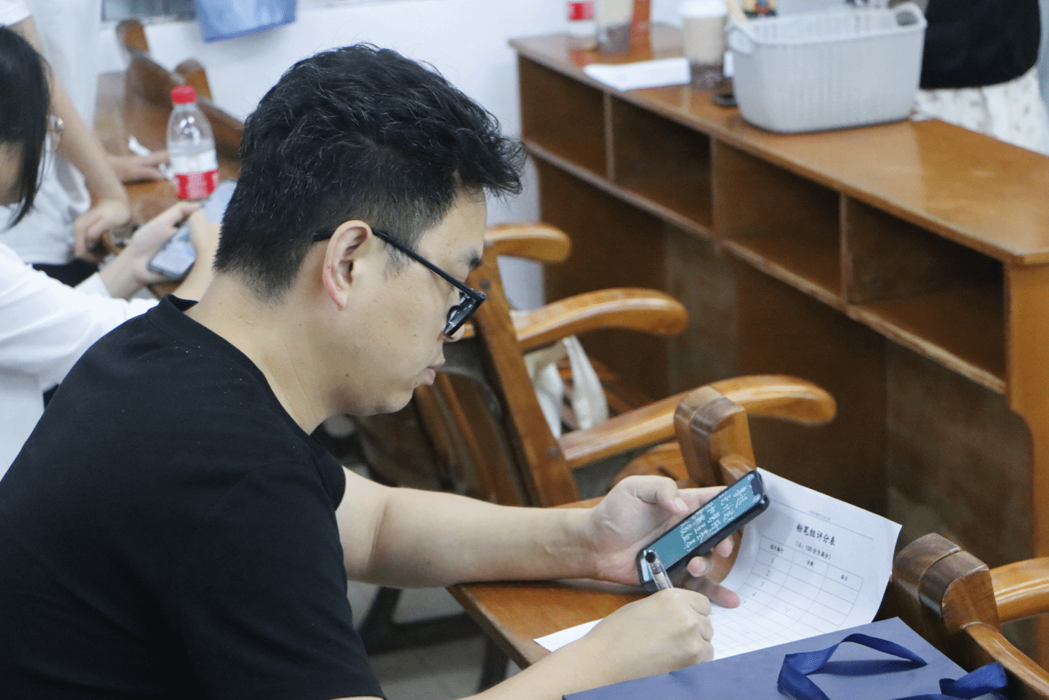 比赛结束后,评委老师对选手的作品进行认真且客观的评分。只见他们的脸上露出欣赏的笑容,向选手们的作品投去赞许的目光。之后,记者对李吾铭老师进行了采访。当谈及举办三笔字比赛对文传学子有什么意义时,李吾铭老师坦言道:“举行比赛不但可以促使大家平时多加练习,以此来提高师范生的书写技能,还有助于学院推广规范汉字。另外,以赛促学,以赛促教,举行三笔字比赛不管是对学生书法技巧的提高还是对老师教学技能的提升都有着重要意义。”采访的最后,李吾铭老师对今后相关系列的比赛提出建议:学院可以加强对三笔字比赛的宣传力度,鼓励更多学子参与到比赛当中,让更多的书法爱好者能够展示自己的才华和魅力。