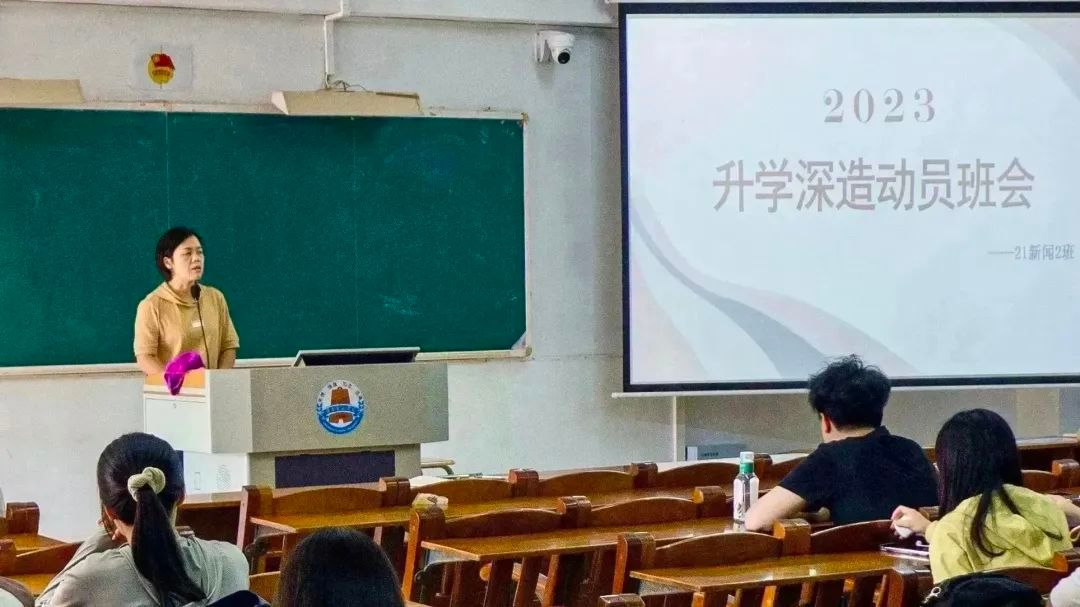 文学与传媒学院学生工作认真落实“笃学·文传”学风建设工程,将升学深造作为学风建设的有力抓手,提升学院人才培养质量,聚焦学生职业生涯规划高质量发展,通过系列暖心举措为文传学子升学深造“研梦”引航、续航。具体表现为:学院全体领导走进学生班级开展升学深造动员工作,实现班级动员全覆盖;全院老师通过“互联网+考研答疑”的方式来为升学深造学子答疑解惑、暖心陪伴,缓解考研学子的考研压力、内心困惑;学院博士教授抱团为升学深造学子开展专业指导,强化学生专业素养提升;策划“升学深造经验赋能”系列经验分享会,强化学生榜样作用引领;策划系列考研榜样专访行动,讲好文传学子升学深造的奋斗故事;选派学生到境外参加短期交流项目,拓宽学生境外升学深造思维视野;开展升学深造复试与调剂指导会、暑期走访慰问留校复习的考研学子、为考研学子派发考研文具“暖冬行动”等系列暖心举措。