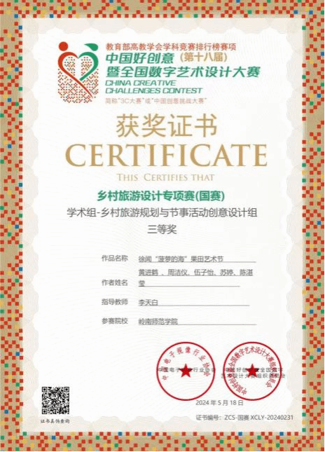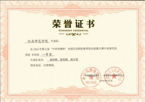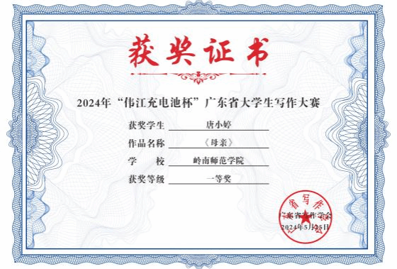锐意进取展雄才,师生共铸新辉煌。合理的师资队伍、成熟的教学模式、完善的课程体系,保证了人才培养质量,学生在各种比赛中屡获殊荣。近三年来:学生参加“挑战杯”“互联网+”“攀登计划”等创新创业比赛获得奖项十多项;参加“中华经典诵写讲大赛”“全国汉语国际教育综合技能大赛”“广东省本科高校师范生技能大赛”等教学比赛获省级以上奖项10多项;参加“全国大学生广告艺术大赛”等专业竞赛获得省级以上奖项40多项;参加“全国大学生文学作品大赛”等写作类比赛获得省级以上奖项约2000项。