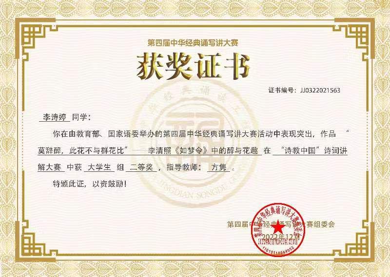 锐意进取展雄才,师生共铸新辉煌。合理的师资队伍、成熟的教学模式、完善的课程体系,保证了人才培养质量,学生在各种比赛中屡获殊荣。近三年来:学生参加“挑战杯”“互联网+”“攀登计划”等创新创业比赛获得奖项十多项;参加“中华经典诵写讲大赛”“全国汉语国际教育综合技能大赛”“广东省本科高校师范生技能大赛”等教学比赛获省级以上奖项10多项;参加“全国大学生广告艺术大赛”等专业竞赛获得省级以上奖项40多项;参加“全国大学生文学作品大赛”等写作类比赛获得市级以上奖项约2000项。