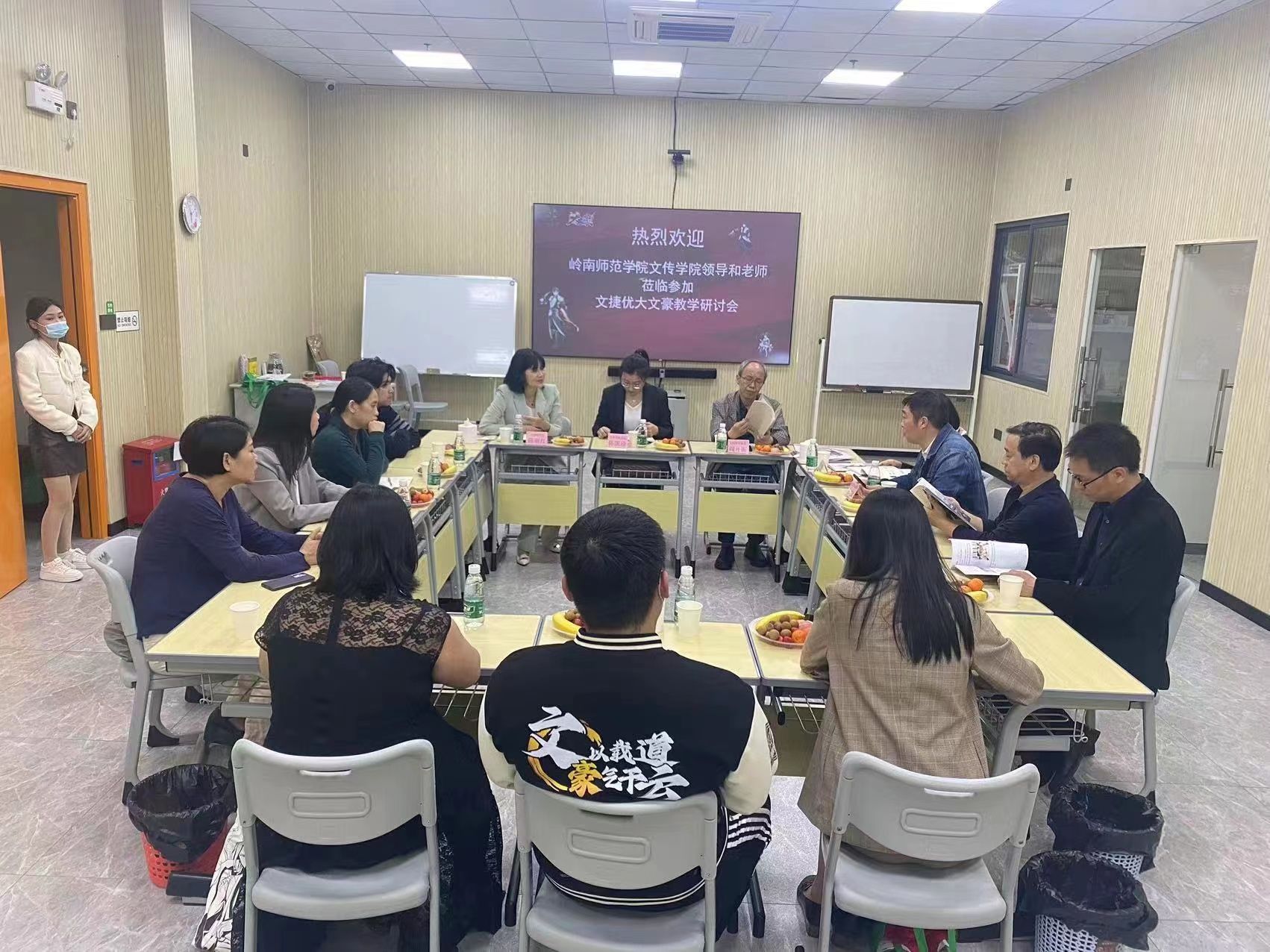 陈丽红校长对文传学院的到来表示热烈的欢迎,作为岭南师范学院文传学院校友的她,对母校有着非常深厚的感情,她表示母校一直助力文捷优的发展,与文传学院共建了“文捷优写作学院”,每年选派优秀的学生到文捷优实习实践。陈校长希望文传学院能够继续输送更多更优质的人才,特别是文学写作方面的人才,助力文捷优更好地发展。