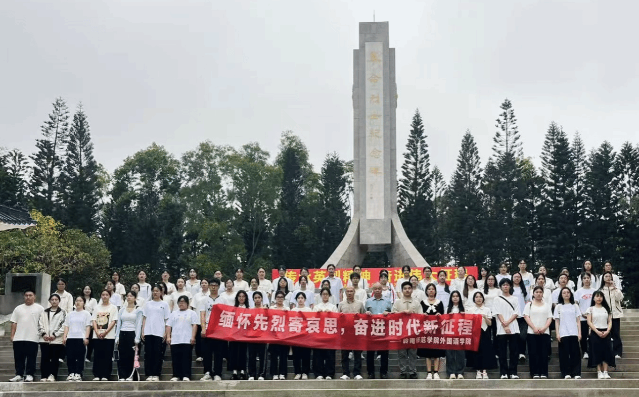 为赓续红色血脉,铸魂育人新征程,外国语学院党委于2025年3月28日组织师生党员及入党积极分子代表,前往湛江市寸金桥公园烈士陵园开展"铭记先烈志,砥砺新征程"主题教育活动。学院党委书记陈永国、党委副书记杨建伟带领60余名师生代表,在春日的绵绵细雨中追思英烈,传承精神火种。