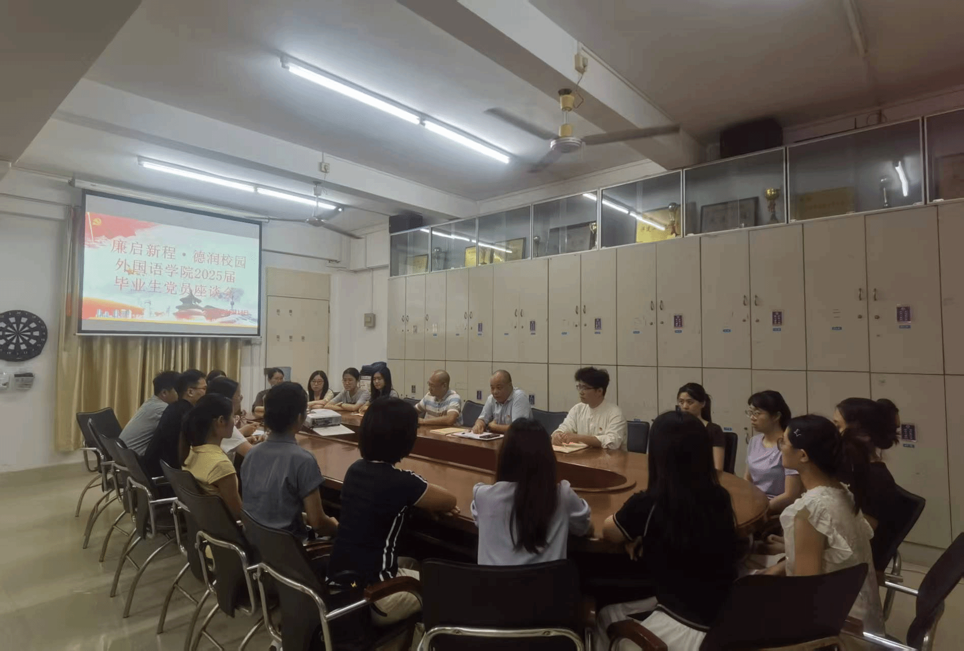 6月18号晚上,外国语学院在岭南师范学院寸金校区教三-411召开廉启新程·德润校园外国语学院2025届毕业生党员教育座谈会。外国语学院党委书记陈永国,党委副书记杨建伟、学生党支部书记李华婷、陈秋湛、黄日新、全体21级毕业生党员学生出席此次会议。
