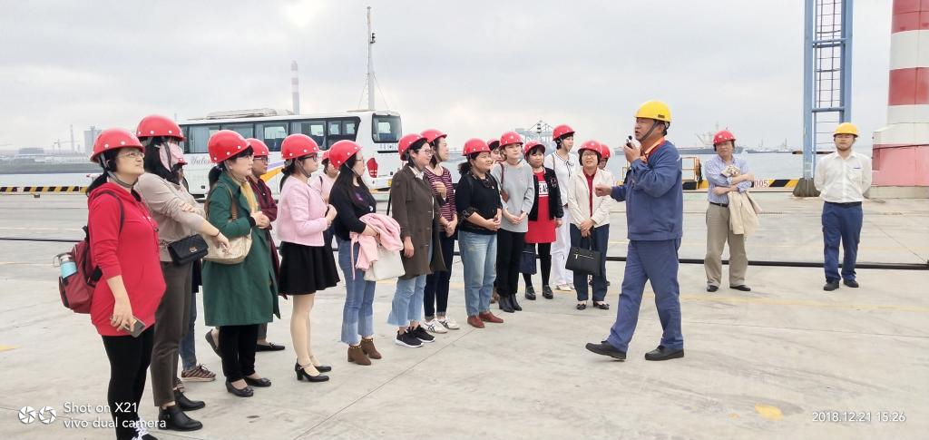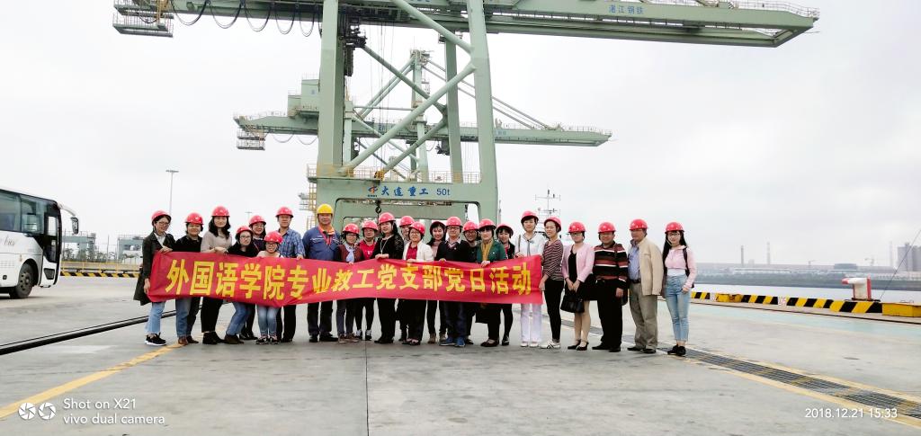 12月21日下午,由外国语学院党委冯彩莲书记带队,专业教工党支部23名党员前往东海岛宝钢湛江钢铁有限公司参观学习。