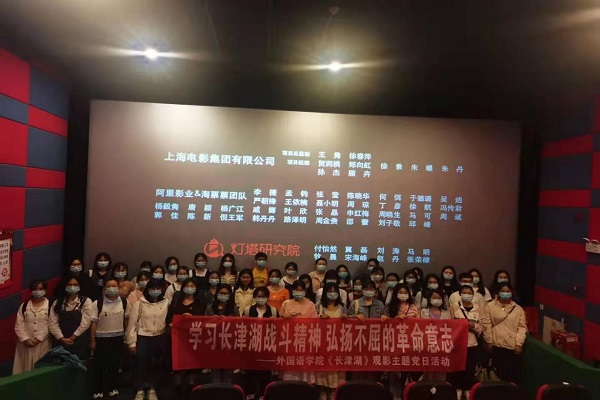 10月16日,外语院一二支部开展观看电影《长津湖》的支部活动,部分在校党员及干部参加了此次活动。此次活动的目的是认真学习贯彻习近平总书记“七一”重要讲话精神,大力弘扬伟大建党精神,深入推进党员的党史学习教育和增强其党性修养,进一步巩固其党史学习教育成果,以及促进党员深入了解抗美援朝战争,激发爱国情怀,大力弘扬爱国精神。
