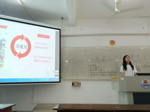 会议还进行了发展党员工作。会议通过了积极分子万浚月、黄凤权和张思敏同学转为发展对象,预备党员何思慧同学和戚明悦同学转为正式党员的议程。五位同学发表了她们的总结演讲,指出成长与不足之处,最终全体正式党员投票表决通过。