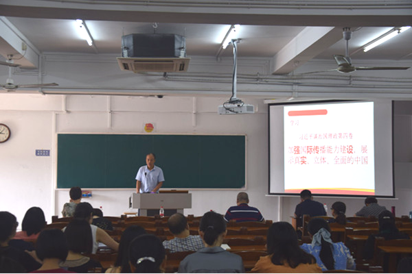 9月23日下午,外国语学院在教三605组织全体教职工学习《习近平谈治国理政》第四卷。出席学习会的有外国语学院党政班子成员及全体教职工,会议由学院党委书记陈永国主持。