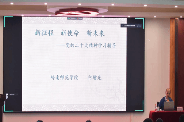 何增光以“新征程、新使命、新未来”为本次发展对象培训课程的主题,重点分析党的二十大召开的背景,认真领悟党的二十大提出的新思想新论断、作出的新部署新要求。“当代中国青年生逢其时,施展才干的舞台无比广阔,实现梦想的前景无比光明。”何增光指出,作为青年共产党人应从精读原文、联系学、结合学三个方面学习二十大报告中所蕴含的思想,应做到有理想、肯吃苦、敢担当、有胸怀、懂方法,应明白作为生逢其时的中国青年,要怀抱梦想、脚踏实地,苦干实干,在全面建设社会主义现代化国家新征程上唱响青春之歌。