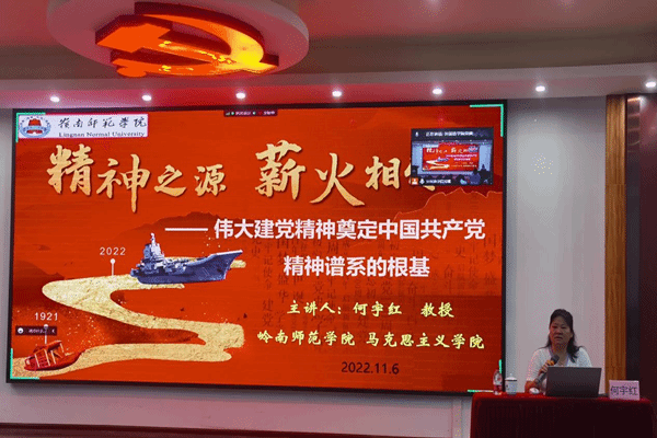 何宇红以“精神之源,薪火相传”为主题,通过观看视频阐述寓意的方式带领全体参会同志共同回首百年风雨路,从石库门到天安门,从兴业路到复兴路,中国共产党在逆境中不断成长壮大,在困难中不断前进探索,在打压中不断强大包容。何宇红在课程中指出,现在,中国共产党团结带领中国人民又踏上了实现第二个百年奋斗目标的新的赶考之路,新时代的中国青年要以实现中华民族伟大复兴为己任,增强做中国人的志气、骨气、底气,不负时代,不负韶华,成为实现中华民族伟大复兴的先锋力量。